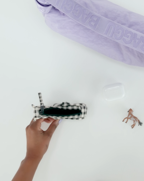A horse-shaped charm to accessorize larger bags and keep small items within reach.