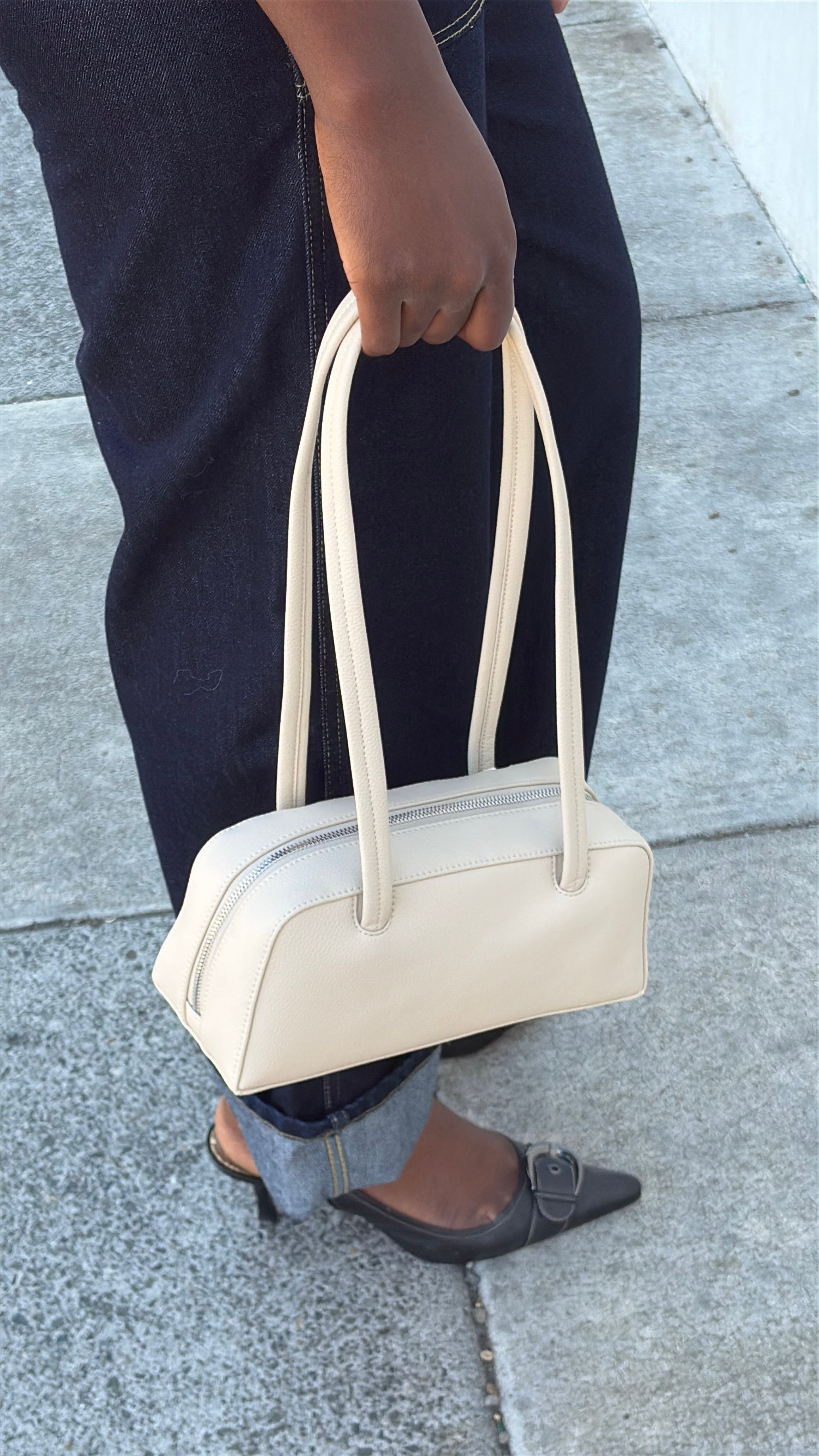 Small Recycled Leather Bowler Bag in Stone