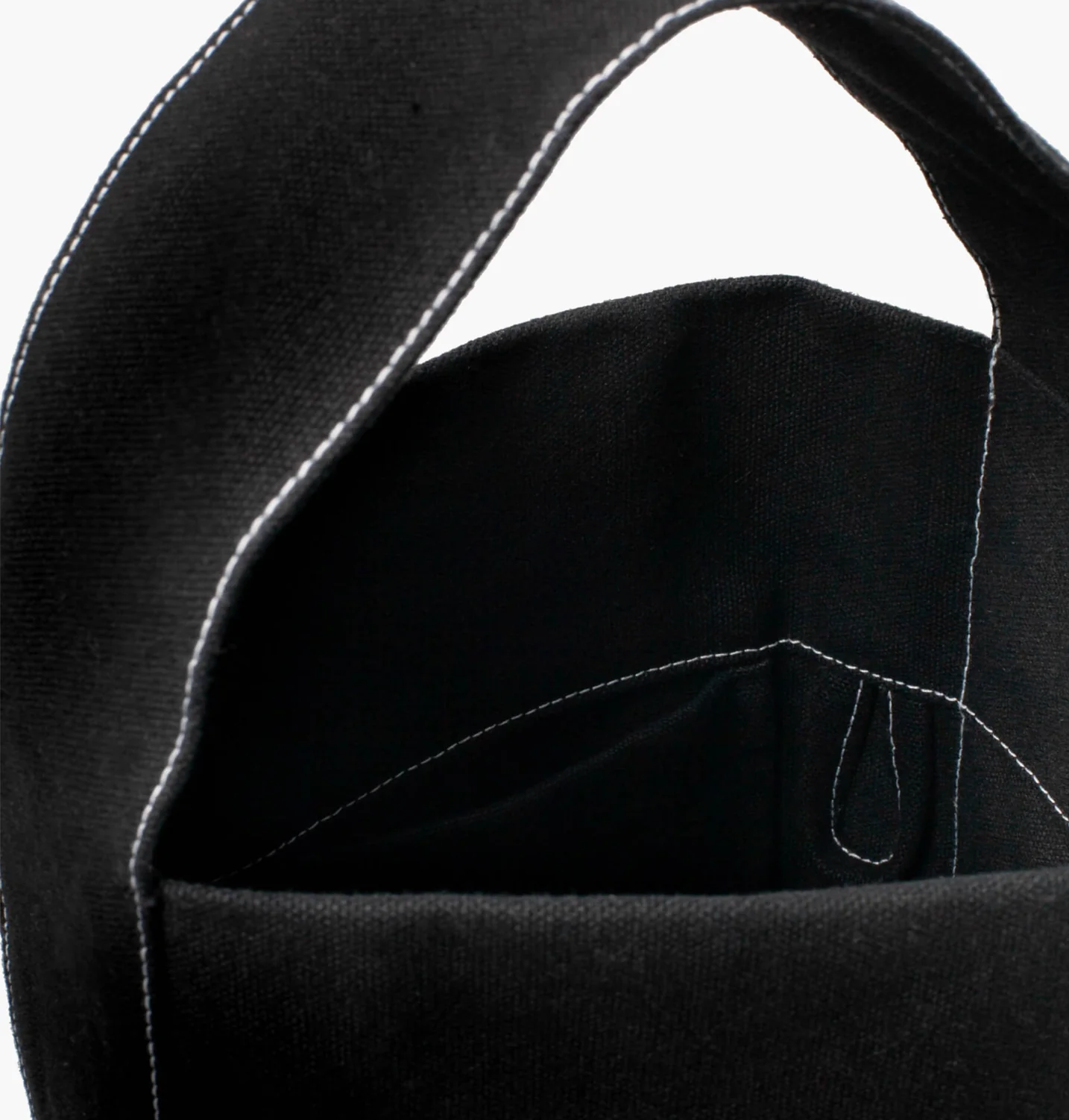 A mini bucket tote bag with a distinctive wide strap for structure and depth. Its minimalist and spacious design features one interior pocket and a keychain loop for quick access to essentials. Made with a heavy duty 15 Oz cotton duck canvas with an environmentally-friendly water repellent treatment. Made in NYC.
