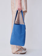A medium-sized minimalist canvas bucket tote bag, designed for everyday use and travel. Laptop-friendly, lightweight, and made from durable waterproof canvas.