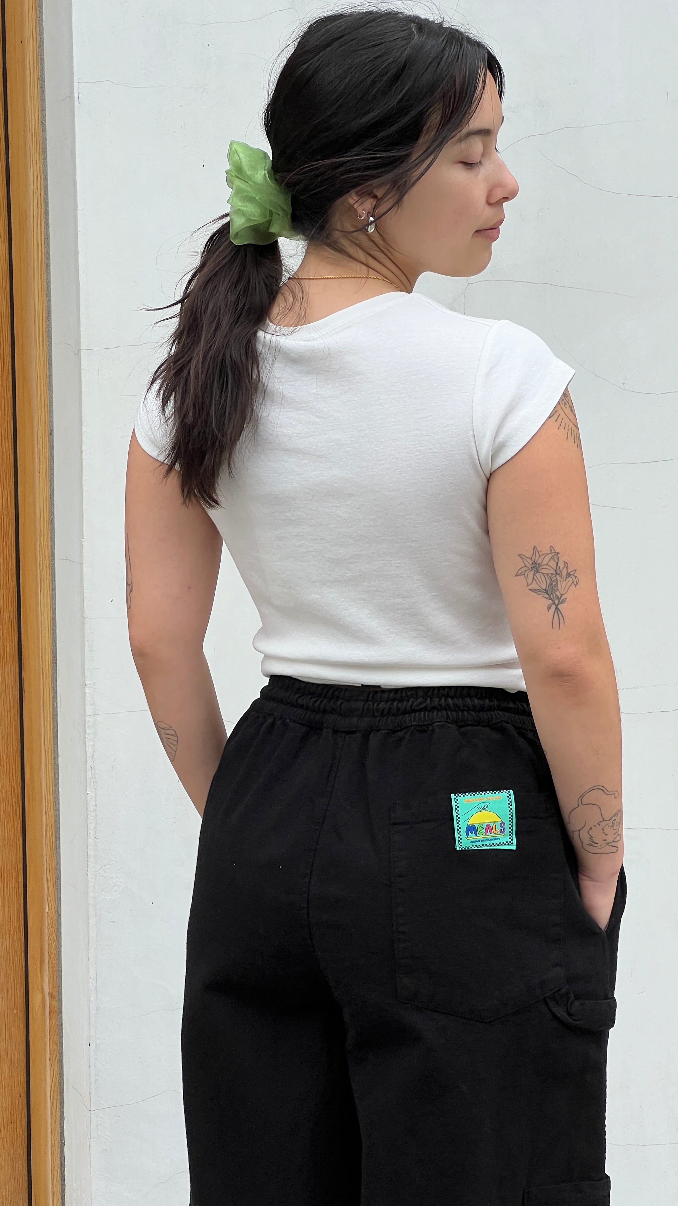 *Cookin' pants with 5 big pockets. Licorice, an acquired taste, now universally adored. Elastic waist + drawstring. Made in LA.