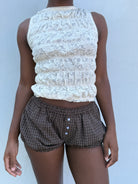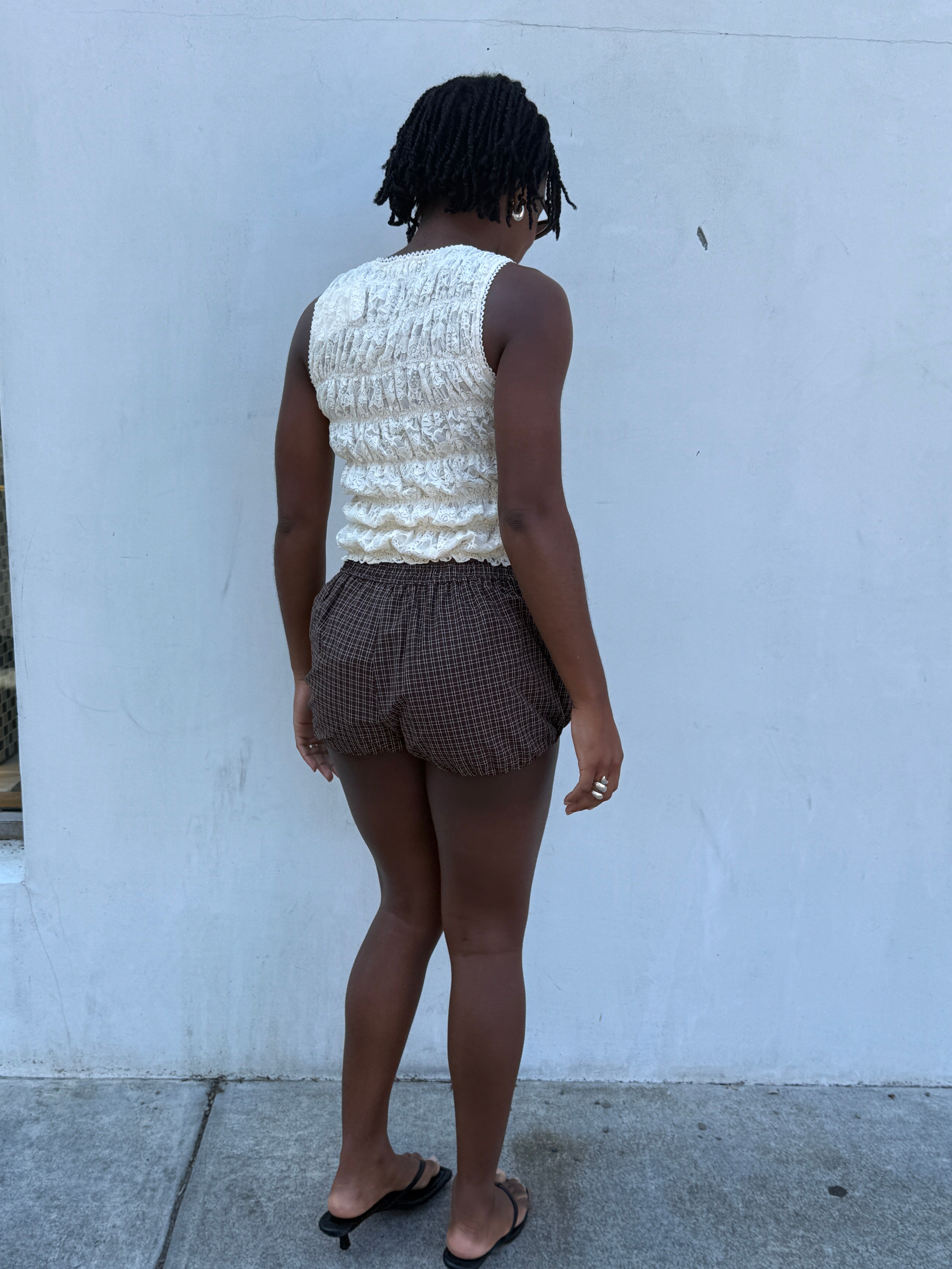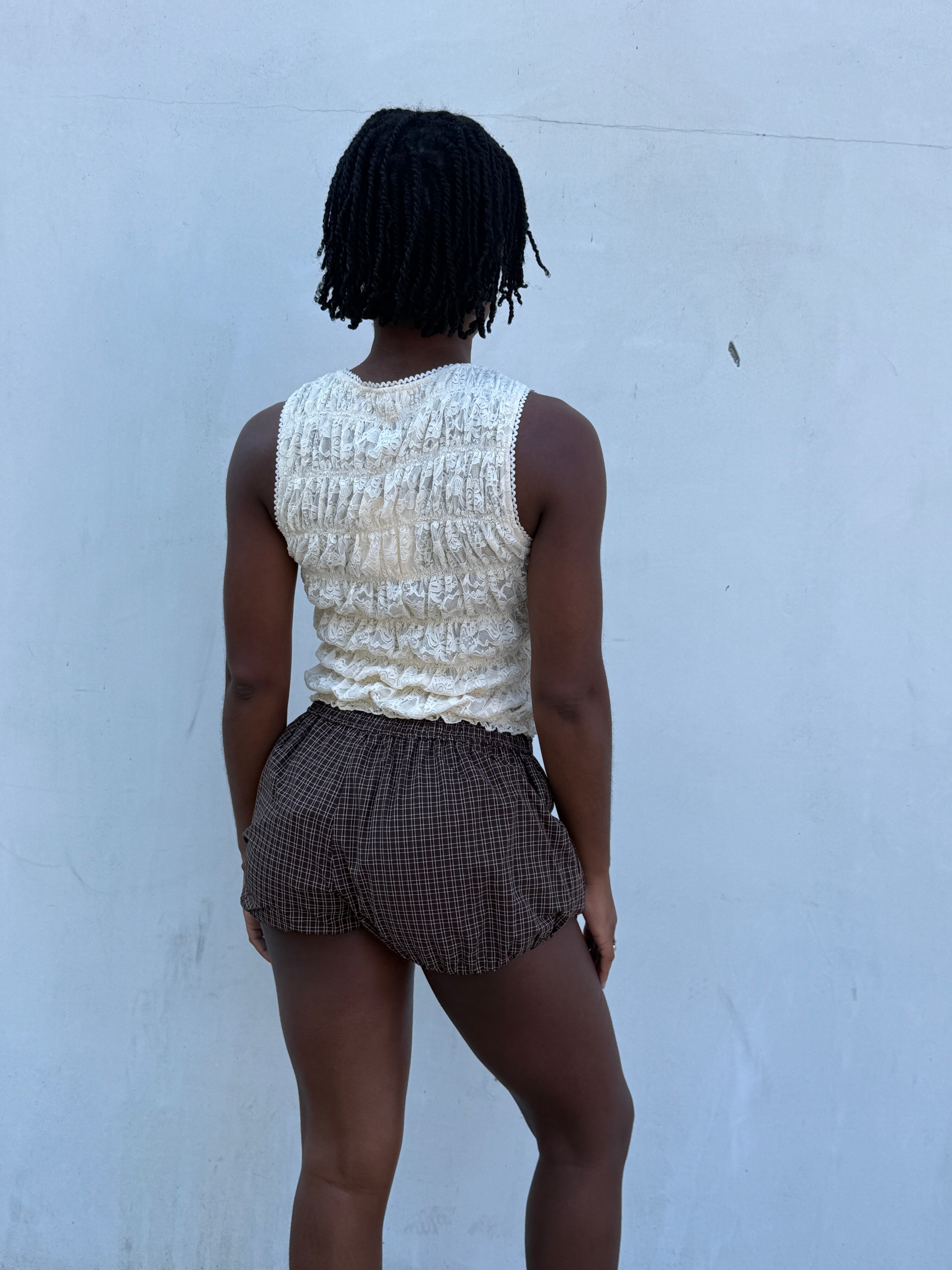Machine wash cold with like colors. Do not bleach. Line Dry. Iron in cool heat. Do not dry clean.
