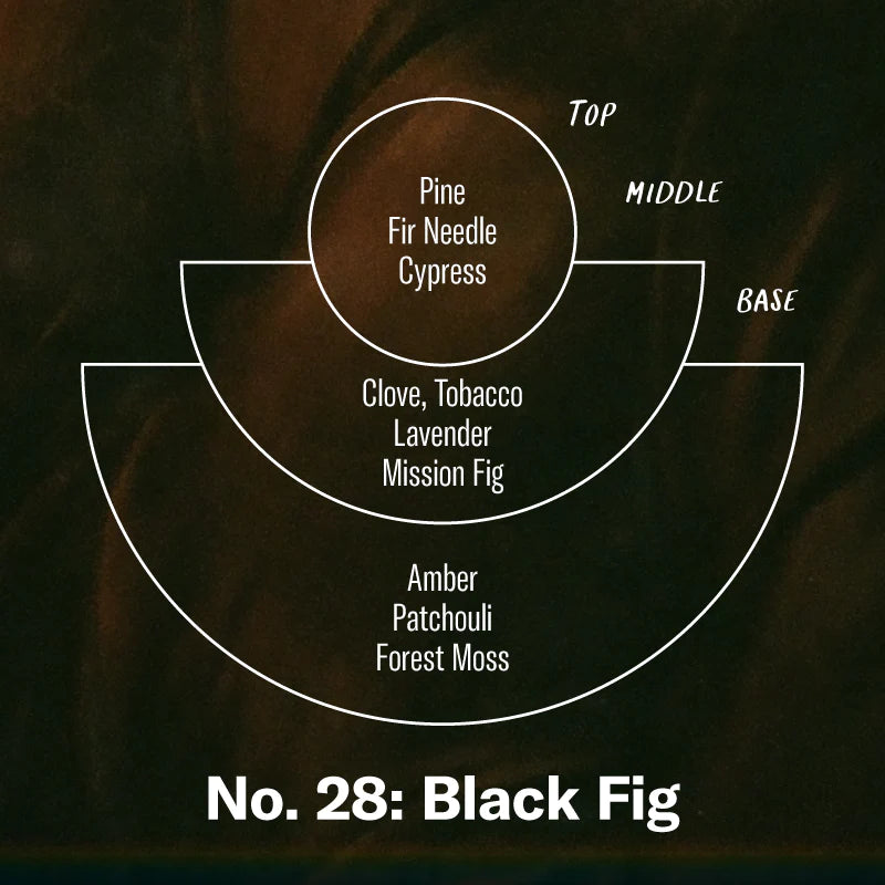 Backyard fruit trees, something baking in the oven. A little spicy and just sweet enough. Evergreen, mission fig, and spice.