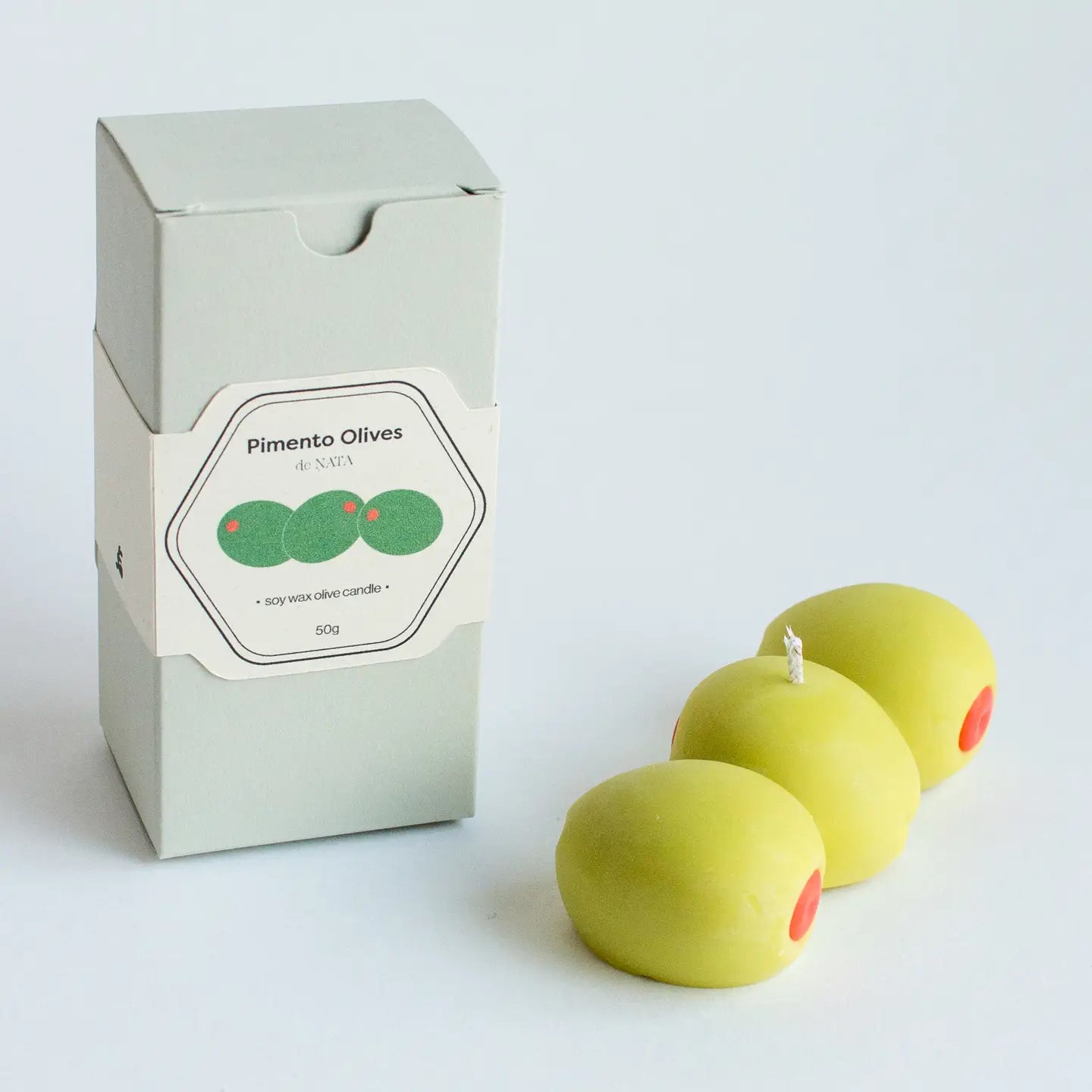 Garnish You’ll Actually Light! Shake up your décor with our Pimento Olive Candle! Perfect for martini enthusiasts, snack lovers, or anyone who can’t resist a good olive pun. Gift it to your favourite olive lover or keep it for yourself. Either way, this candle is a big dill...oops, we mean olive! 10cm x 4cm x 3cm H Burn time: 15 min Scented with Jasmine, Neroli & Orange Blossom.