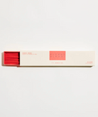 20 sticks of vermilion-hued incense.Each stick burns for 1 hour.Drawer-style premium paper box.Incense sticks measure 7” long.