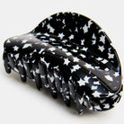 This small-ish-sized hair claw is recommended for all hair types and textures. Perfect for fine hair buns and thicker hair half-updos! Made from high-quality acetate; a durable, plant-based bio-plastic. Metal hardware is lead and nickel-free. Slight variations will appear with pattern, color, and form due to the handmade nature of the product. Measures approx 2.75""L x 1.5""H x 1.5""D