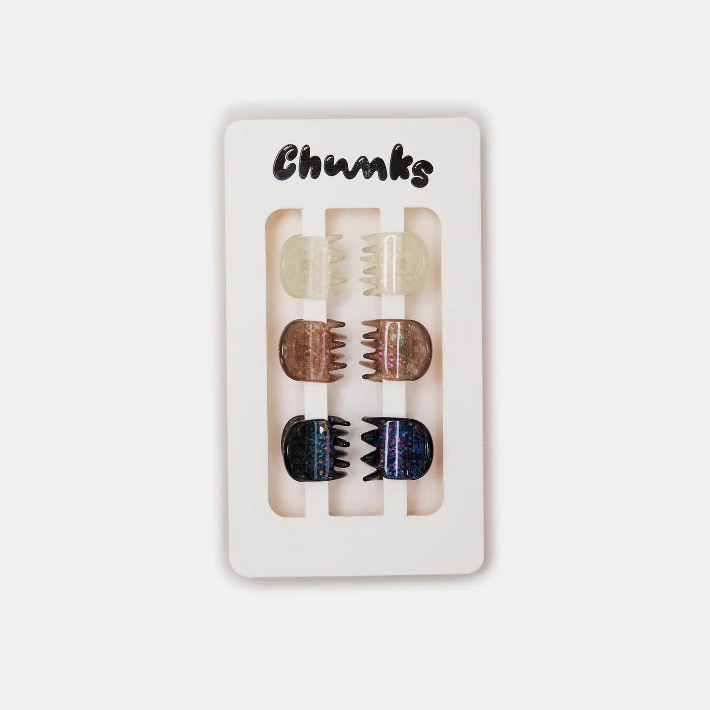 Six micro (but mighty!) claws, perfect for styling all hair types and textures. Made from high quality acetate; a durable, plant based bio-plastic. Metal hardware is lead and nickel-free. Slight variations will appear with pattern, color and form due to the handmade nature of the product. Measures approx 0.75"L x 0.75"H x 0.75"D