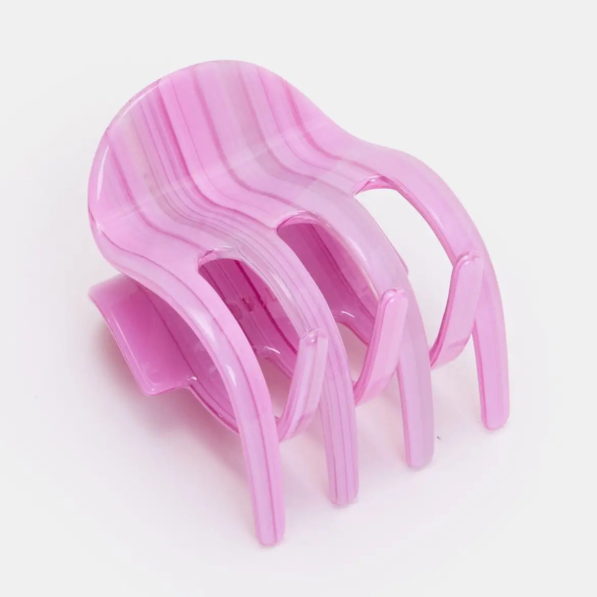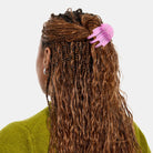 This medium sized claw is uniquely perfect for curly, textured, medium to thick hair. Large teeth give a gentle but firm hold, without crushing curls. Made from high quality acetate; a durable, plant based bio-plastic. Metal hardware is lead and nickel-free. Slight variations will appear with pattern, color and form due to the handmade nature of the product. Measures approx 2"L x 2.5"H x 1.75"D Color: caramel plaid, silver tone hardware