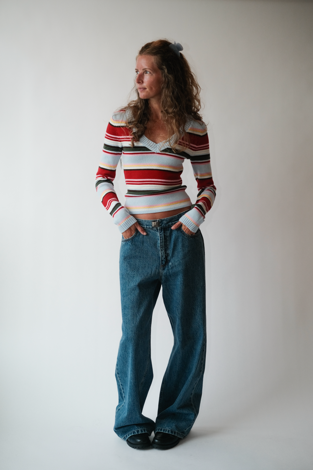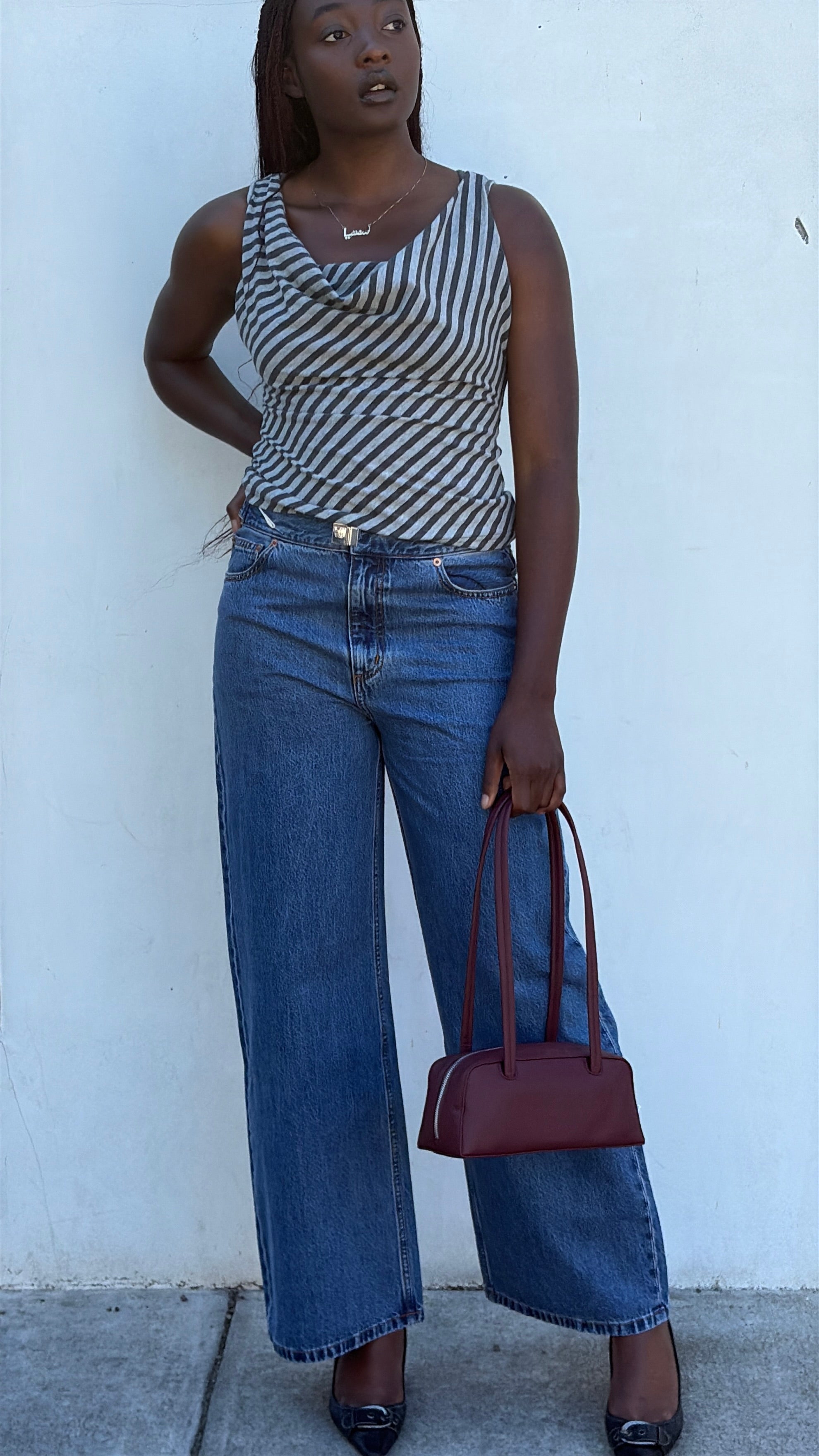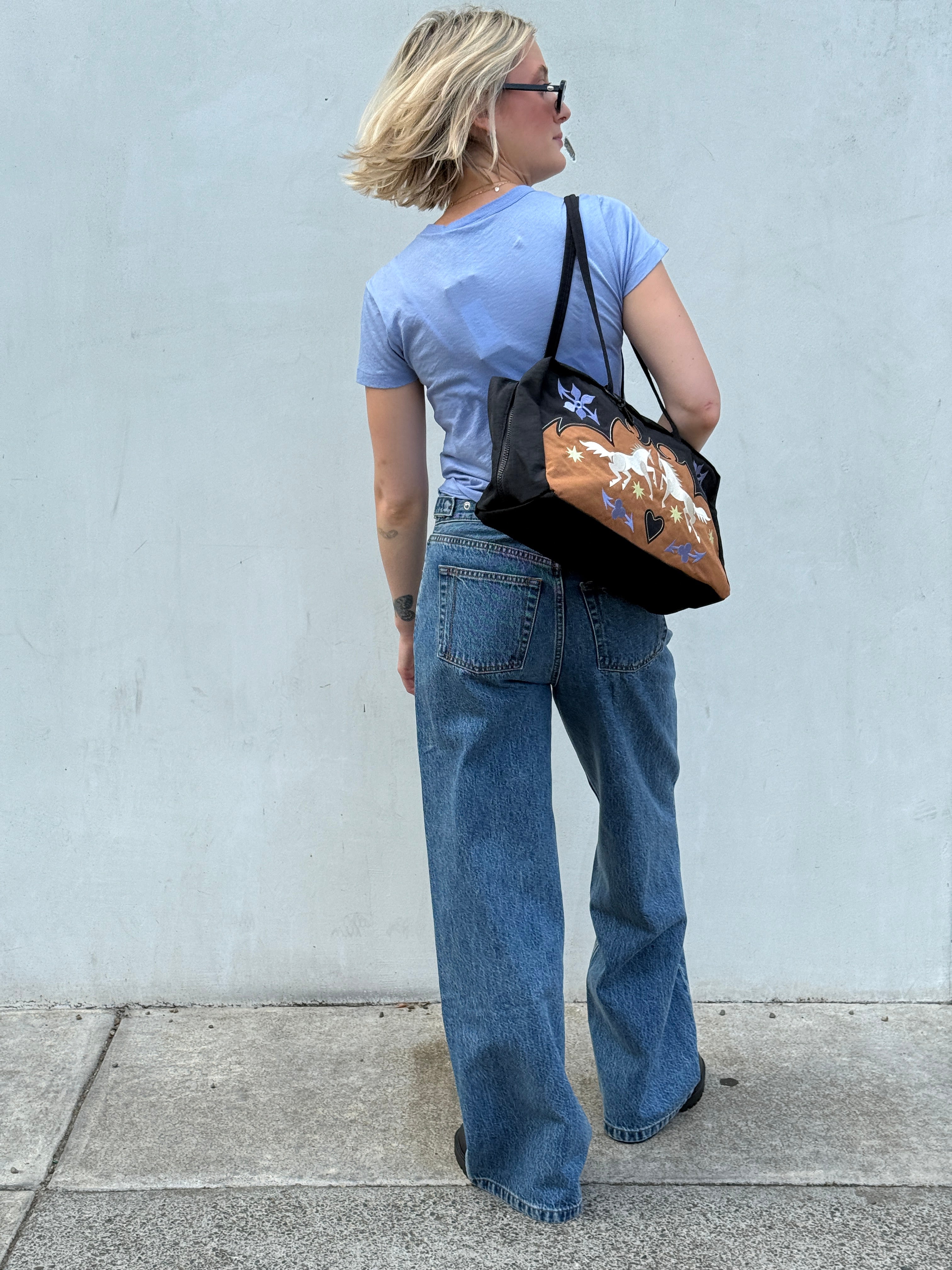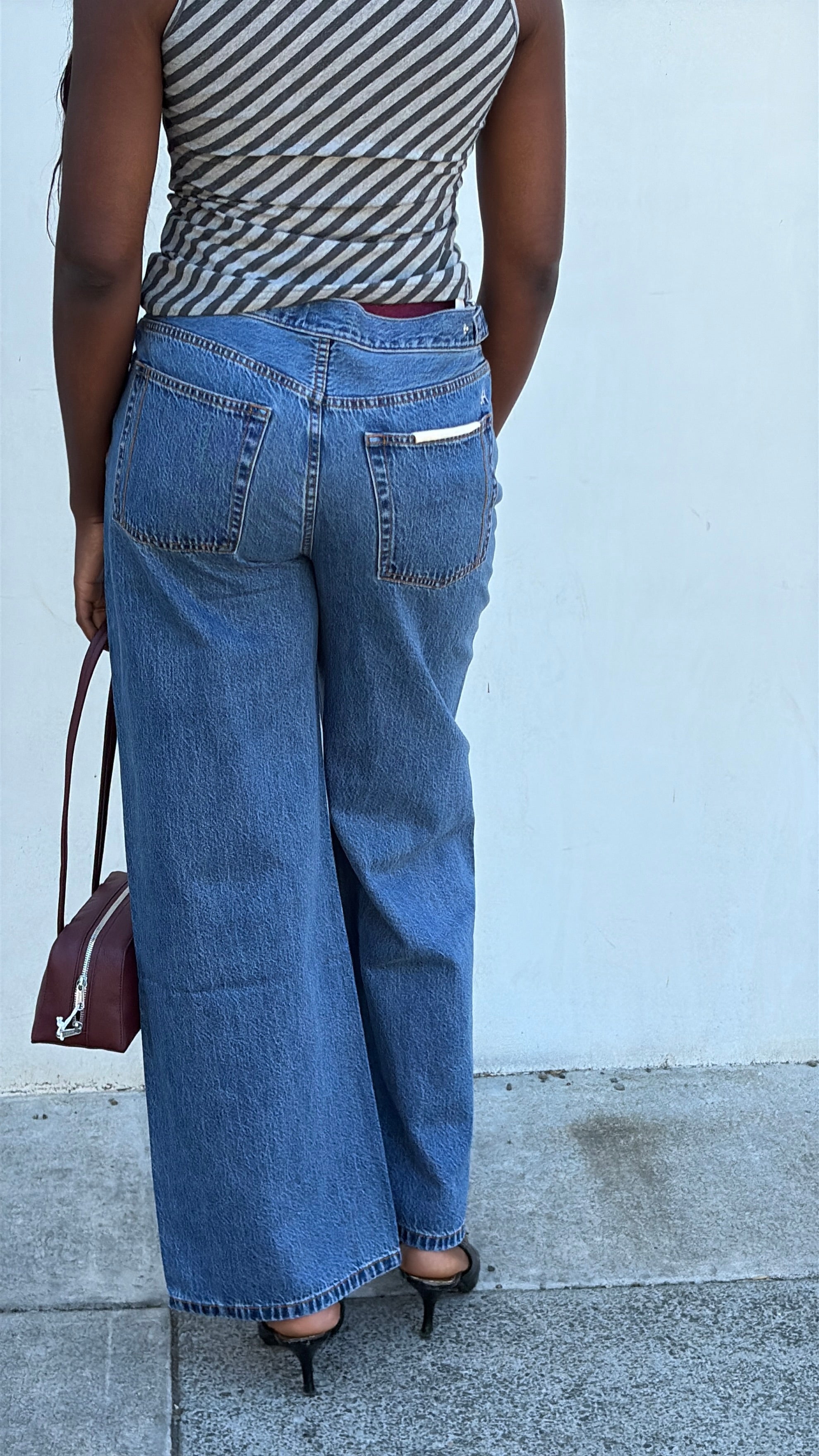 The Buckle jean is a relaxed leg, subtle drop-crotch with a 31" inseam. It features Still Here custom chrome buckle hardware and adjustable waistband side fasteners, allowing it to be worn as both a mid or low-rise jean.