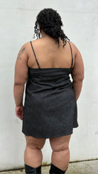 This boxy spaghetti strap mini dress is a lightweight cotton poly blend. Featuring adjustable spaghetti straps, square neckline, a relaxed boxy fit, and a mini length that hits at the mid thigh.