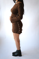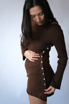 The Elsa Mini Dress drapes off the shoulder and is fitted through the body for a feminine shape. This knit dress is the statement piece your wardrobe’s been waiting for.