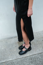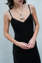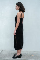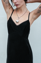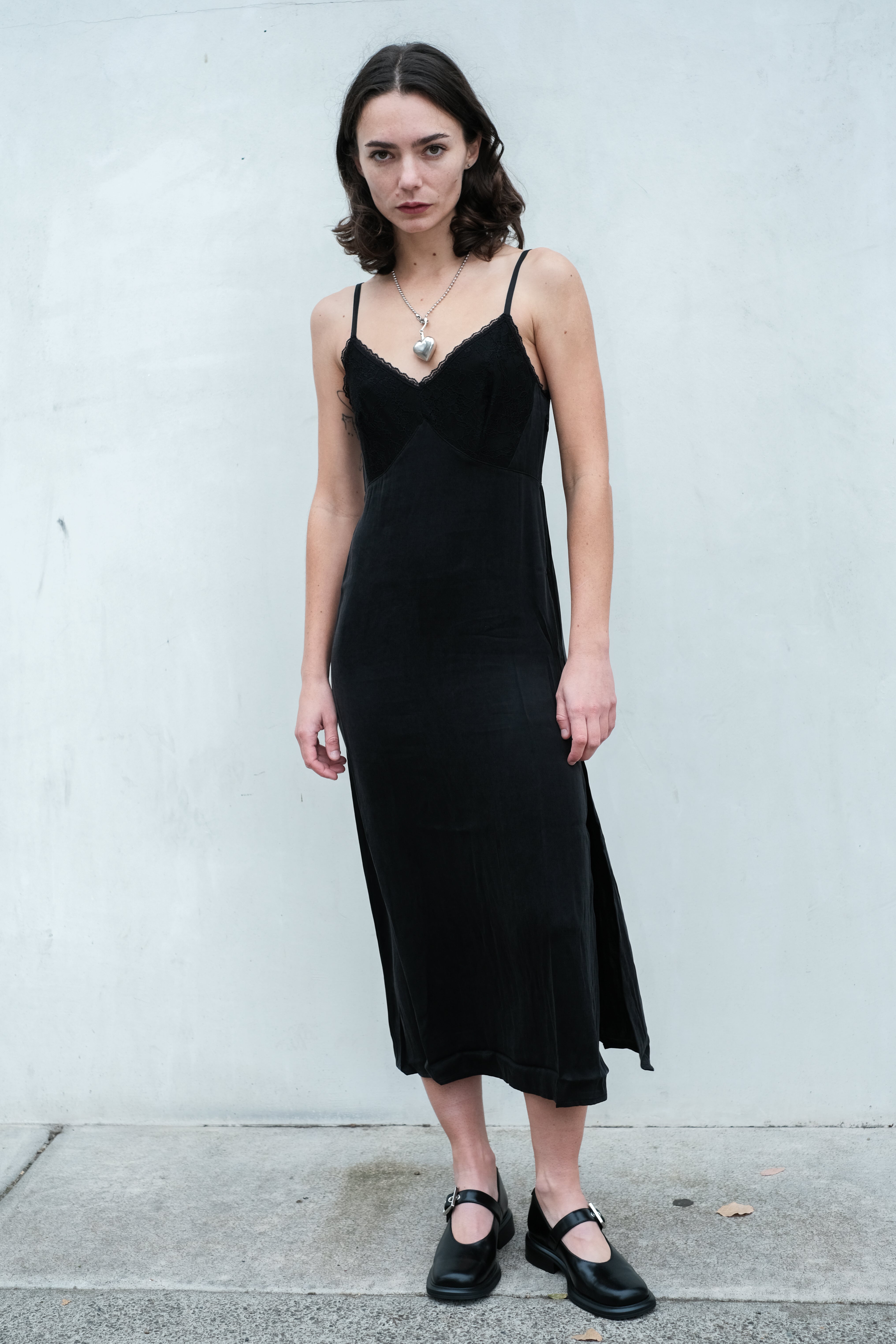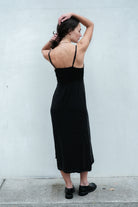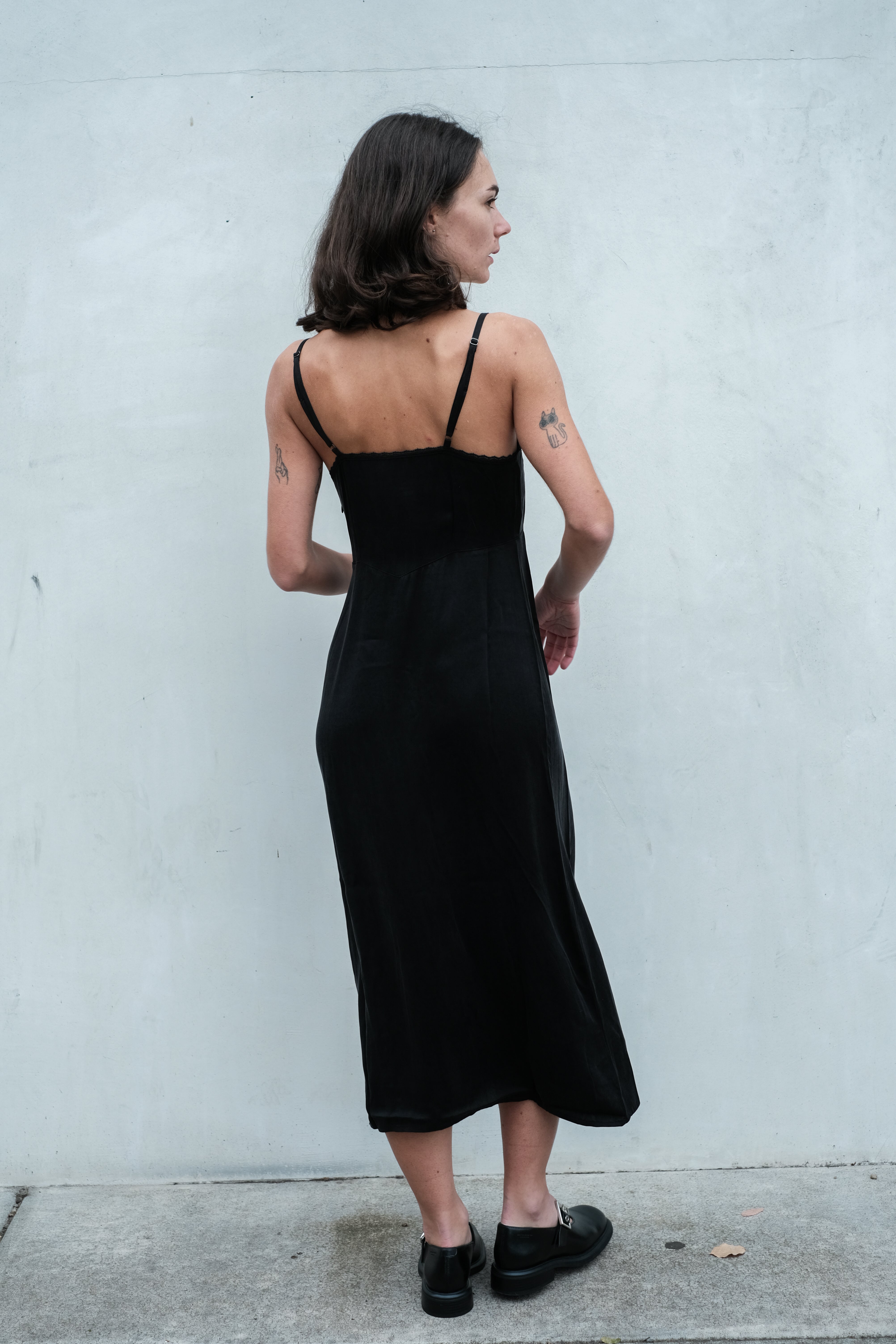 The perfect sexy black dress with lace detail on the chest, adjustable straps and a side slit. Made with the softest fabric, you will never want to take it off. Pair with a cardigan in the fall or with sandals in the summer, it will be your go to black dress.
