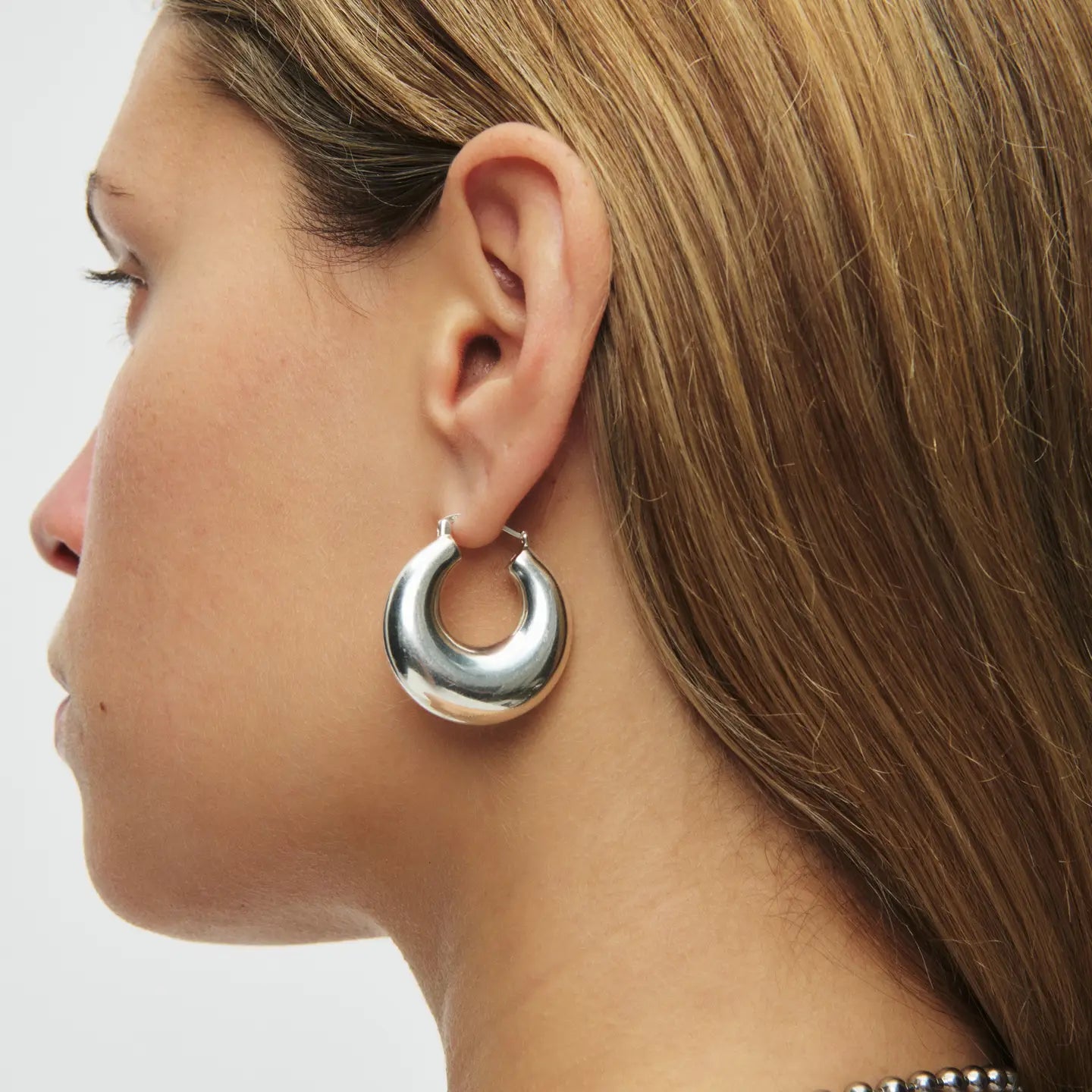 Puffs, an elevated hoop shape meant to wear for any occasion. Hollow inside with a puffed design giving the illusion of a heavy hoop.