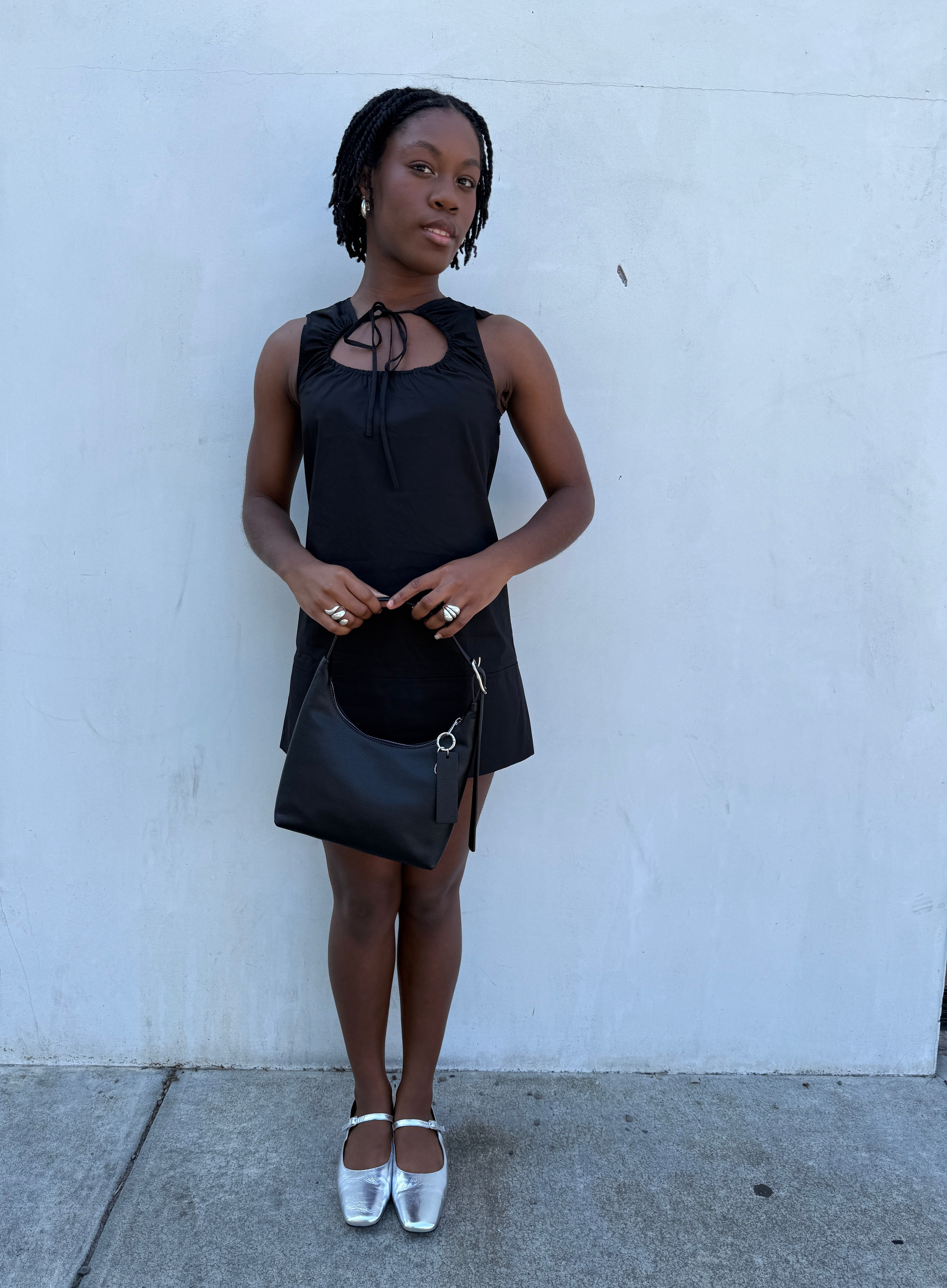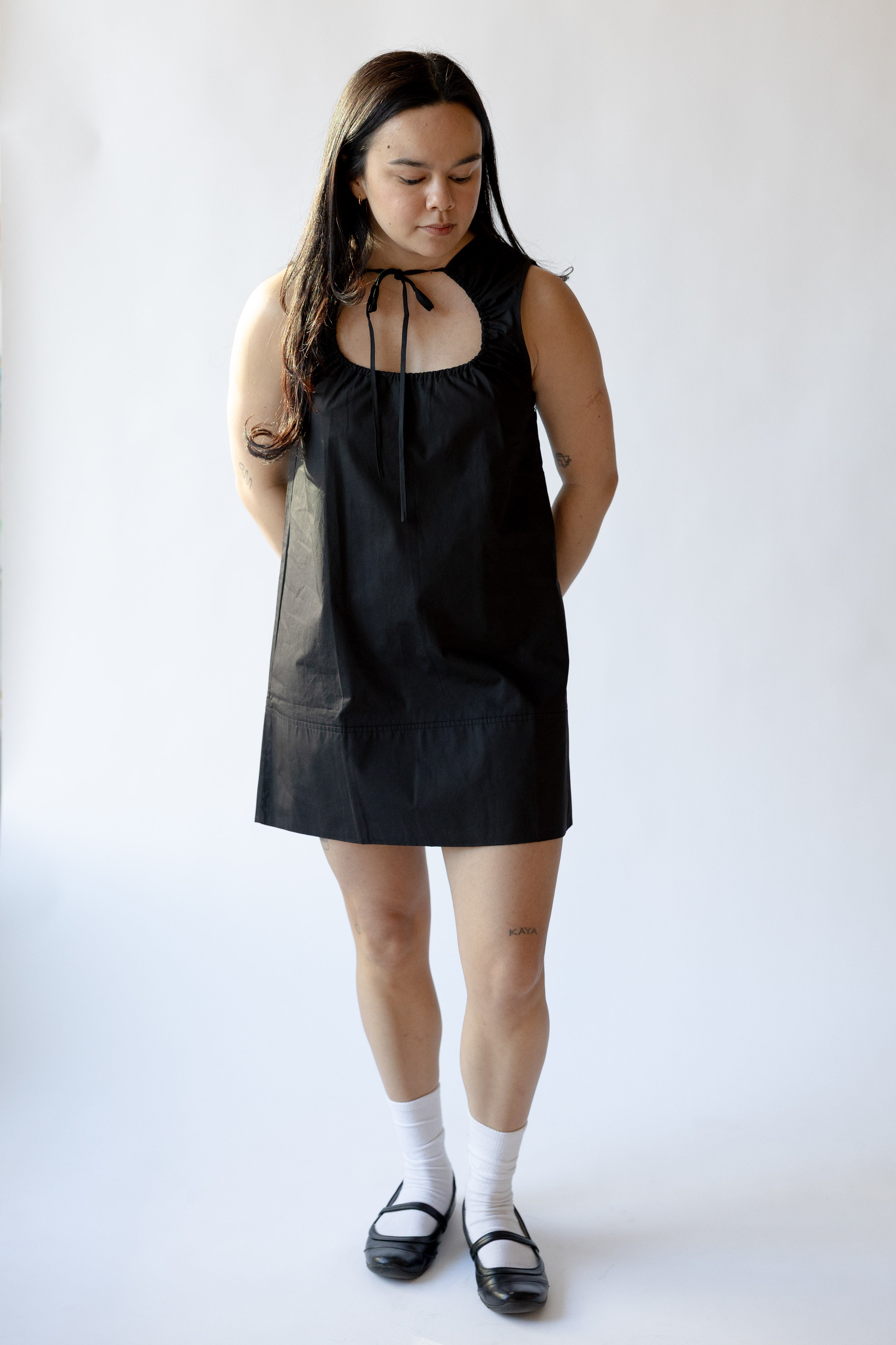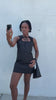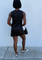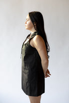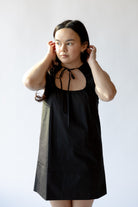 The Eloise - A sleeveless short dress with an adjustable self tie and a ruched keyhole neckline.