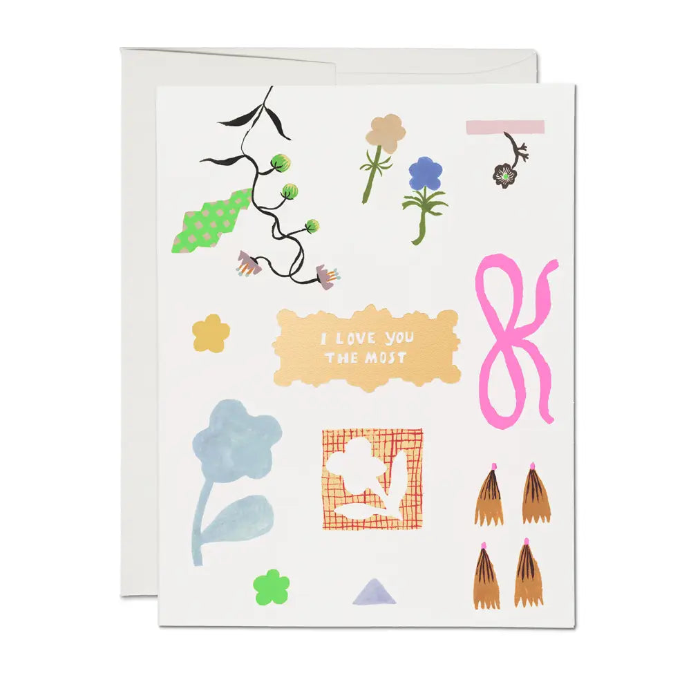 Blank inside. 100lb heavyweight card stock. Offset printed and foil stamped. 5.5 x 4.25 inches. Illustrated by Emily Isabella. Printed by Red Cap Cards in Los Angeles, California, USA, on recycled paper.