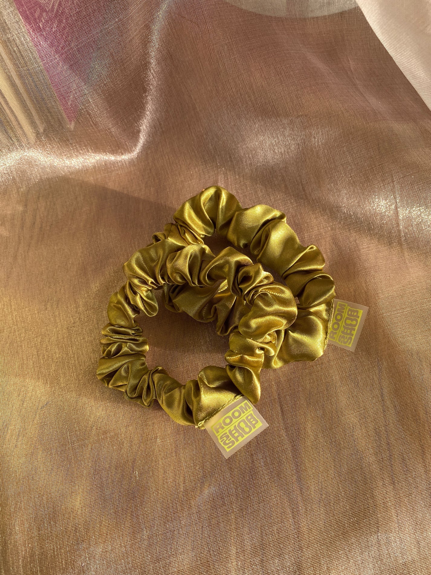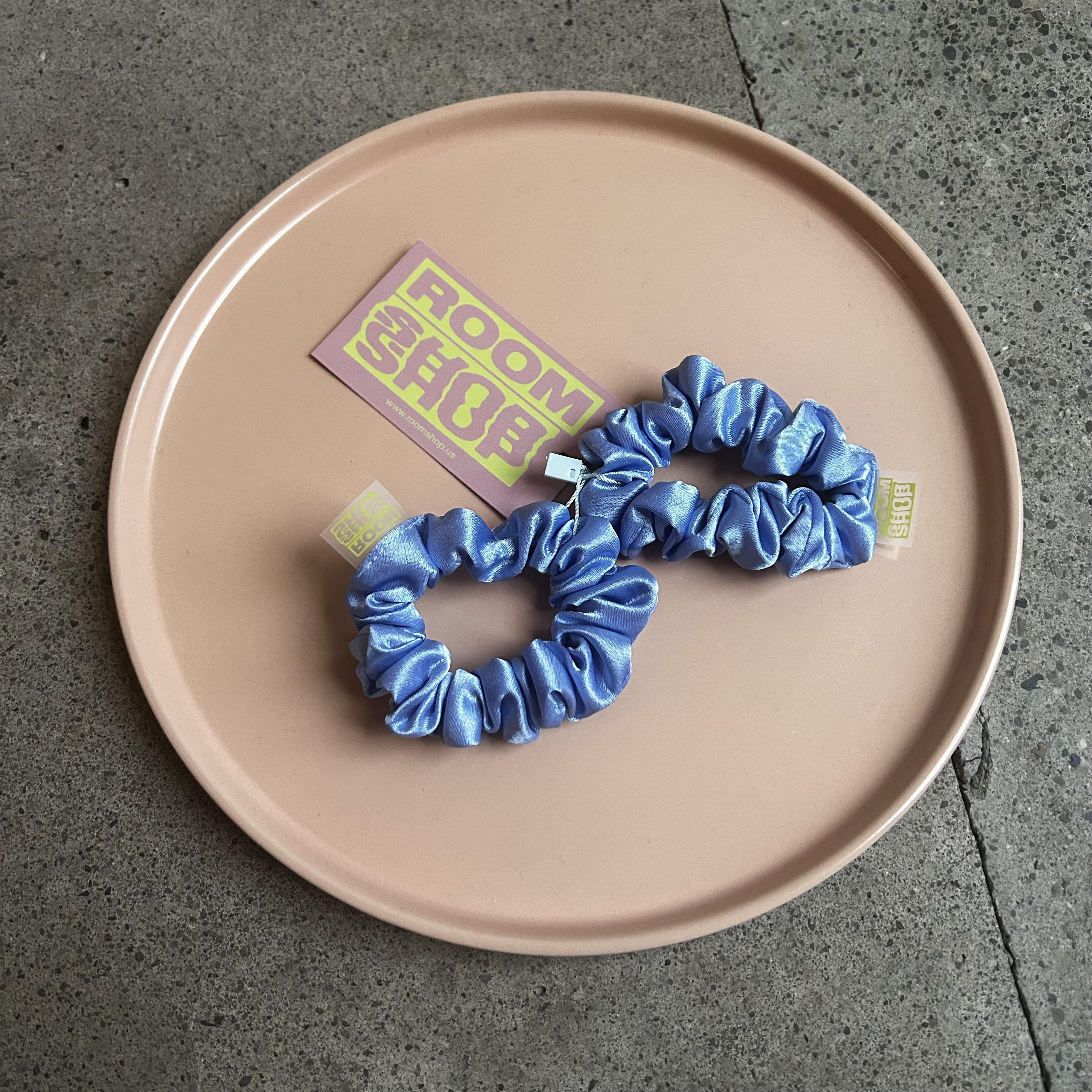 Room Shop's tiniest satin scrunchie in a set of two!