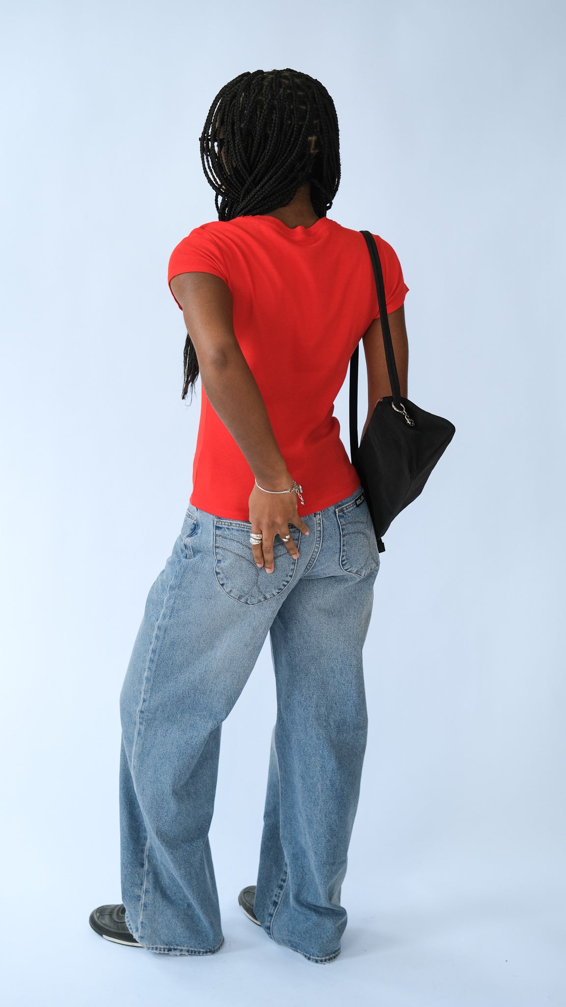 A perfect shrunken rib crewneck tee. Features short sleeves and a slightly cropped length. Made from a fine organic baby rib locally knit in Los Angeles. Garment dyed and pre-shrunk. Organic Cotton yarn sourced in India.