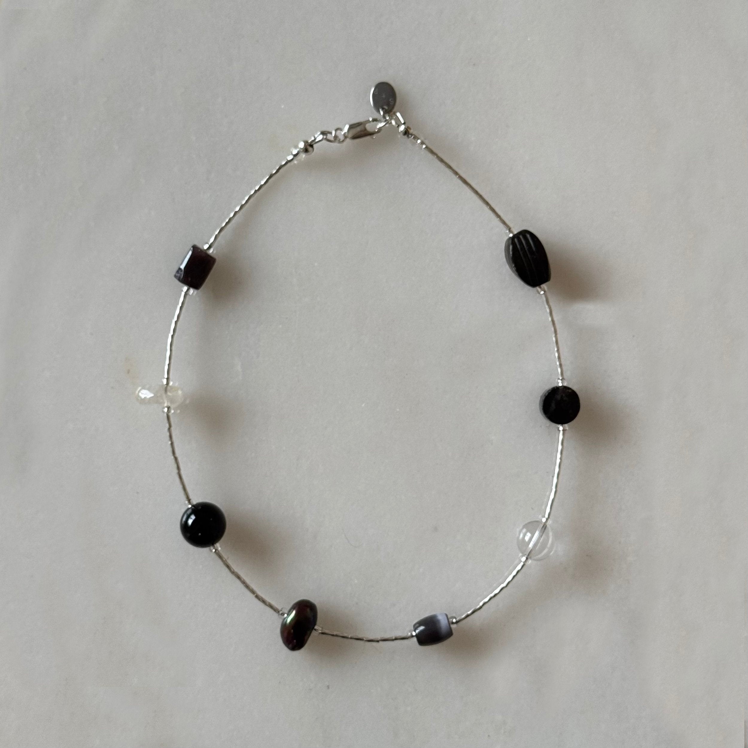 Black mix necklace. This piece is one-of-a-kind and part of a small series of S+P 1 of 1 styles. Classic claw closure. 16” length. Handmade.