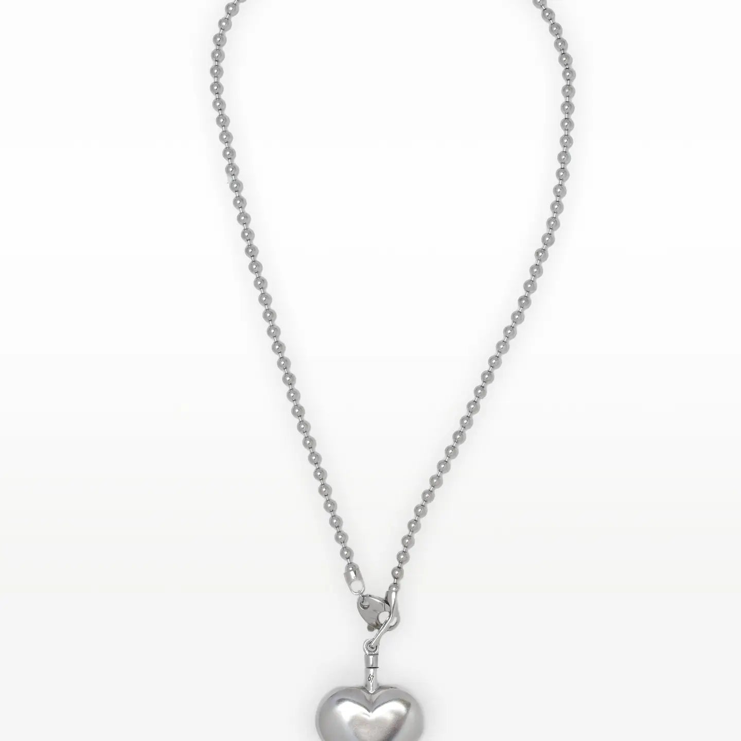 Our best-selling Hollow Heart Necklace features a unique design that unscrews to store perfume, ashes or other small items. Details * Made in sterling silver * chain length 20 inches * 47 grams * Any flaws or minor inconsistencies are characteristics of this handmade item. Materials Sterling Silver 925 Sterling Silver is a lightweight metal made of 92.5% pure silver. It’s highly durable and designed for everyday wear.