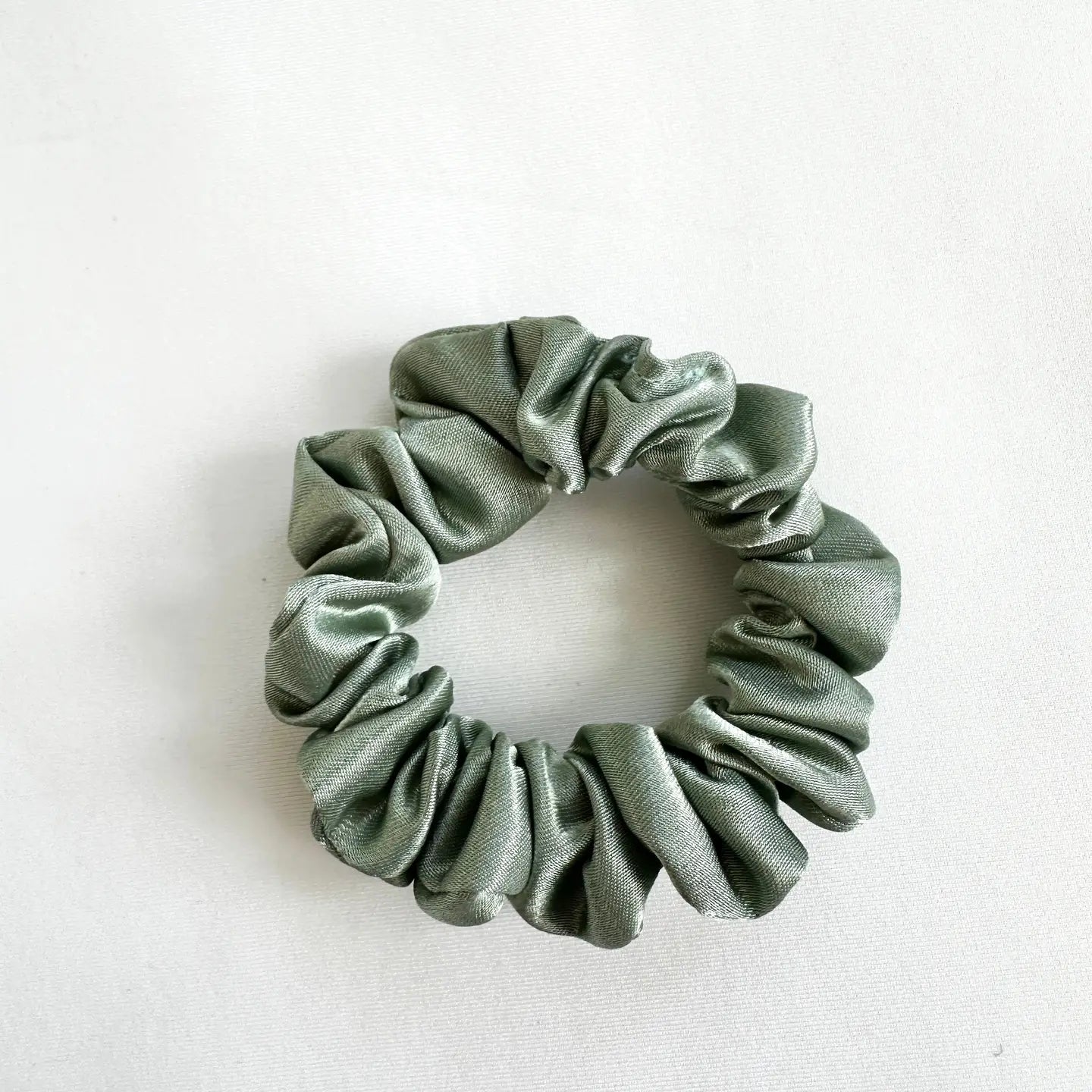 Our tiniest satin scrunchie. Perfect for space buns or just an easy hair tie. Sold in color two packs. Measures about 3" across. Made from 100% Poly Satin. Made in Philadelphia, PA.