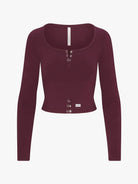 A fitted mid-length long sleeve top made with a soft enzyme washed cotton. Designed with a scoop square neckline and cozy long sleeves. Each top features six functional snaps with three at the chest and three at the hem that can be worn open or closed. Easy to pair with the Butterfly Snap Pant or style on its own.