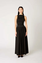 The Clea Dress is a floor-length statement with a timeless A-line silhouette and a soft, gathered finish. Designed with a high bateau neckline, the fully ruched bodice creates a flattering, sculpted shape through the waist before flowing into a full, draped skirt. A side zipper ensures a smooth fit, keeping the look clean and elevated from every angle. Ideal for formal evenings, weddings, or any event that calls for something graceful and grounded.