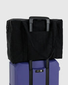 BAGGU’s Cloud Carry-On is the bag to help you float away for a weekend… and maybe then some. It fits everything you need for a weekend away, happily rides on your roller suitcase and stuffs easily into an overhead bin. Take it on a trip, or let it take you on one. Made of heavyweight nylon with a top zip closure, trolley sleeve, two large exterior pockets and a detachable interior zip pouch.