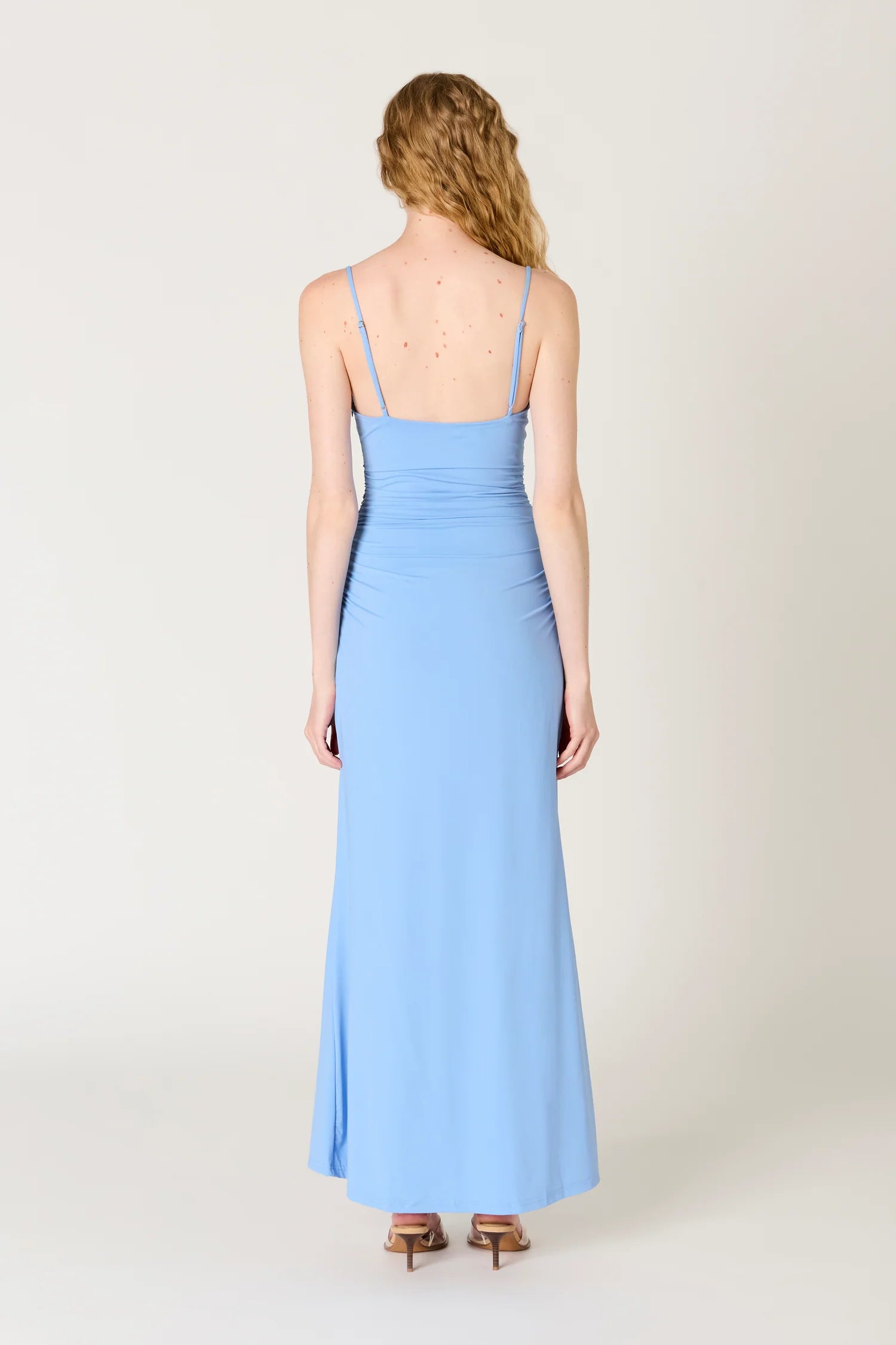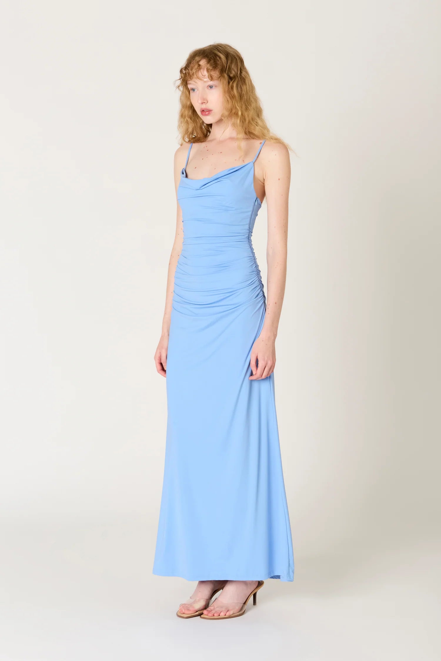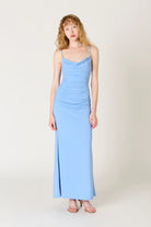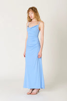 Soft, sultry, and effortlessly elegant. The Ina Dress is a figure-hugging maxi with delicate ruching that flatters in all the right places. A draped cowl neckline and adjustable straps create a refined silhouette, while the flowing hemline adds a touch of grace to every step. Made for candlelit dinners, rooftop soirées, and everything in between.