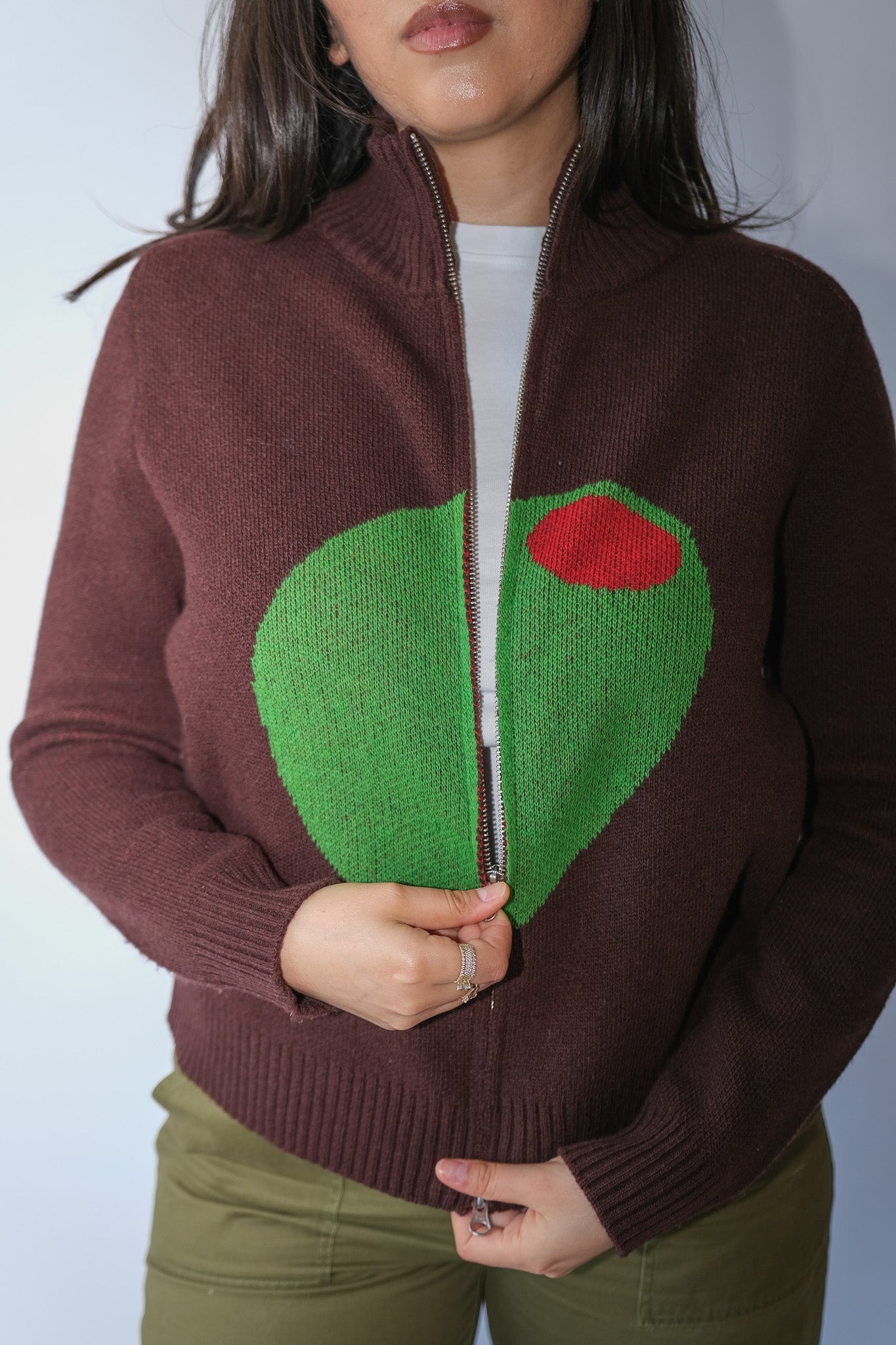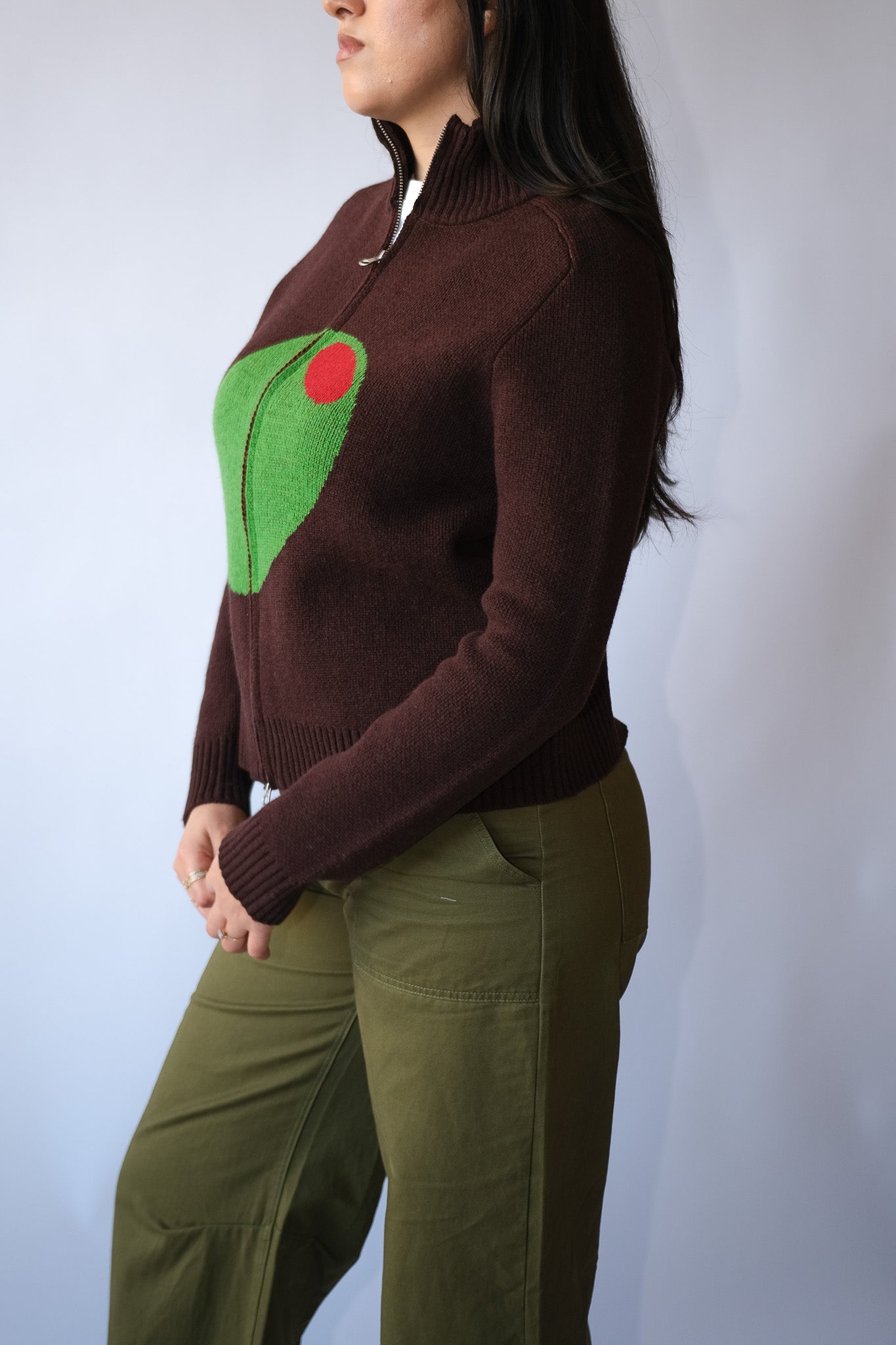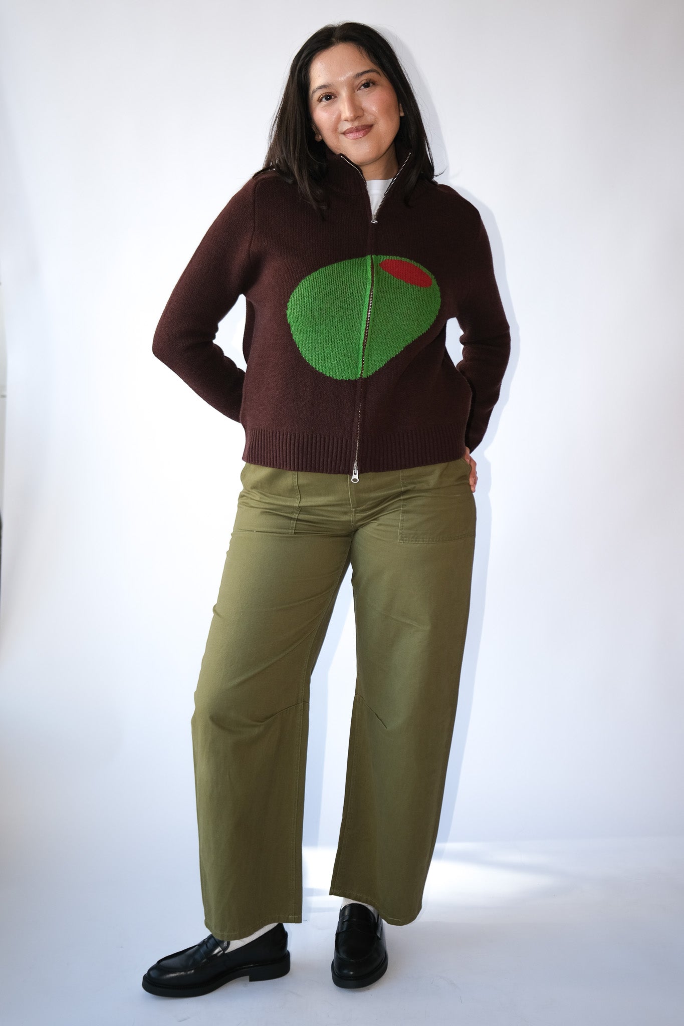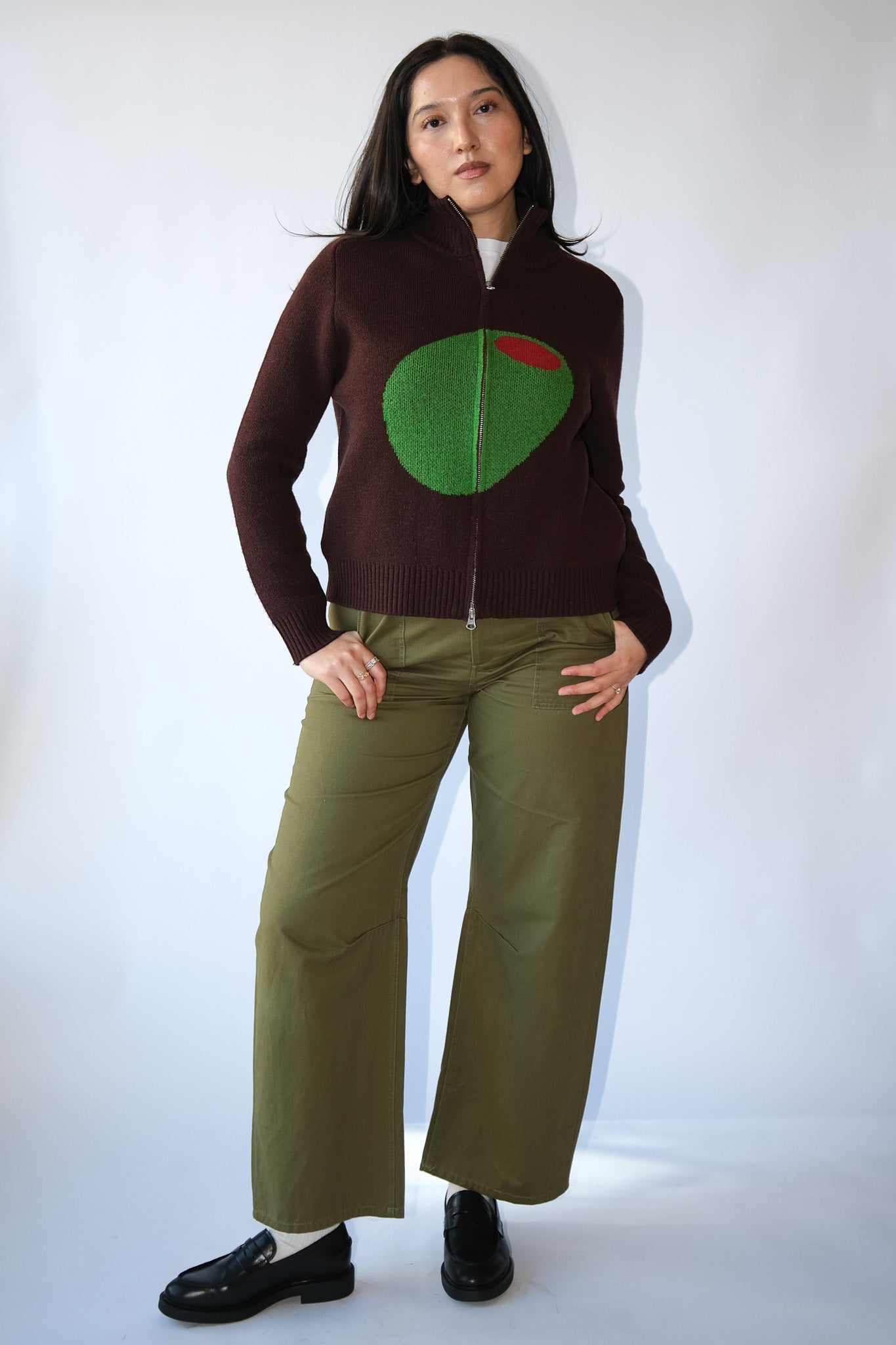 The cozy zip up that we all want - boxy and slouchy with a nice weight and a cute jacquard knit olive! Crafted in a lambswool blend with a high rib collar for real warmth. Detailed with generous side seam pockets and a double ended zip because we thought of everything.