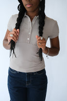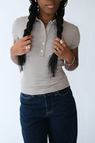 A fun and feminine take on a polo, the Ventura Top balances a classic appeal with a modern, fitted bodice. It features a traditional polo neckline and a partial button placket, updated with gentle shaping under the bust for a more tailored silhouette. The short, fitted sleeves and unlined construction keep the profile sleek and light, making it a versatile choice for everyday wear.