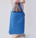 A large minimalist canvas bucket tote bag, designed for everyday use and travel. Laptop-friendly, lightweight, and made from easy-to-clean waterproof canvas.
