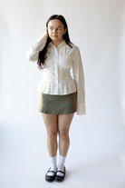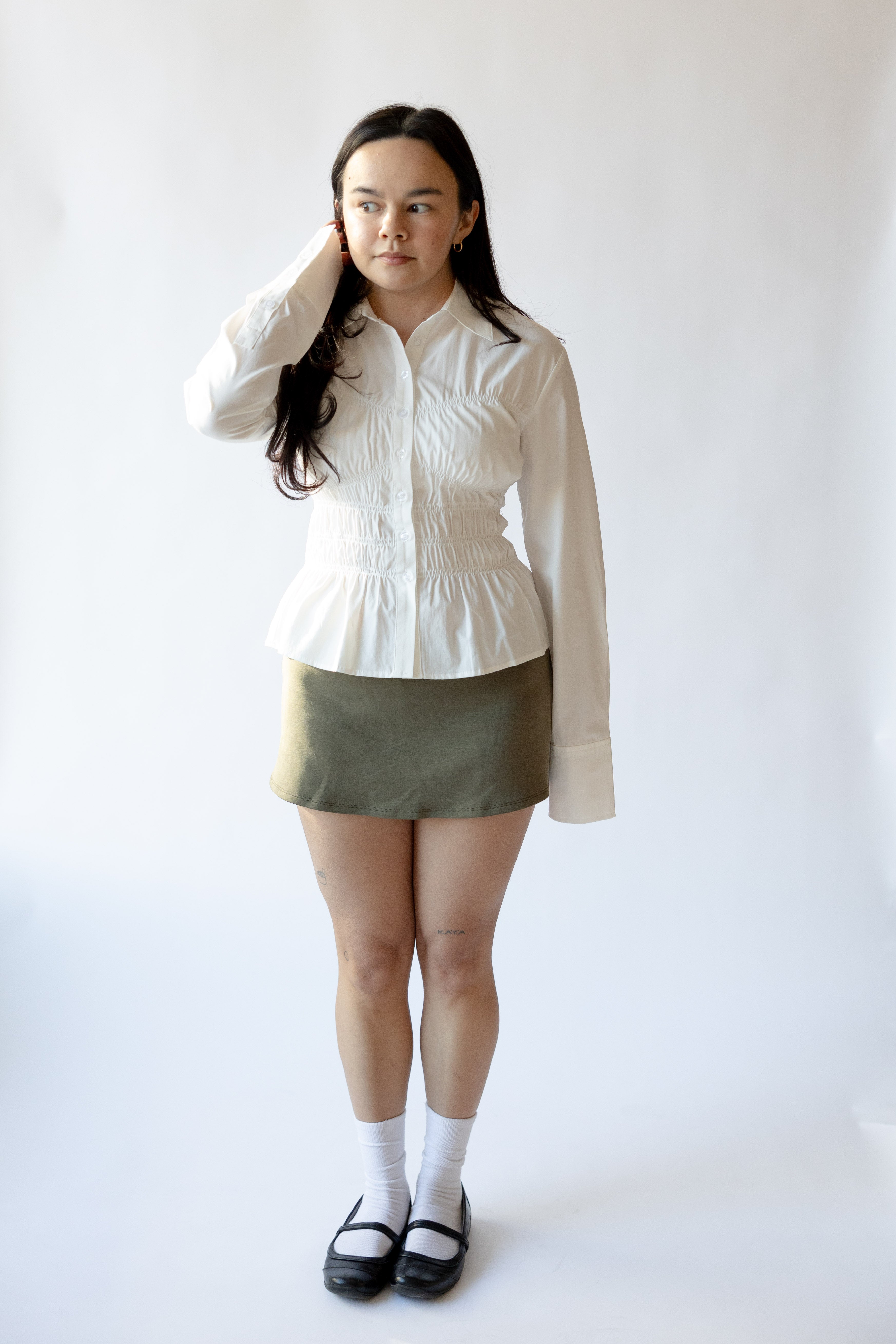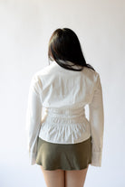 A tailored take on a wardrobe classic, the Bixel Shirt is designed with a flattering, subtly flared silhouette that hits at the high hip. Allover smocking through the bodice adds definition and texture, while the crisp pointed collar and structured cuffs lend a polished finish. Finished with a full button front, this long-sleeve style brings a sculpted feel to everyday shirting.