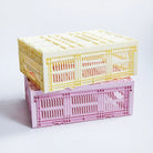 The heavy duty storage crates are the true milk crates that combine functionality with aesthetics. Designed for both indoor & outdoor uses. Safety snaps inserted in all four corners to ensure crates do not fall apart during use.