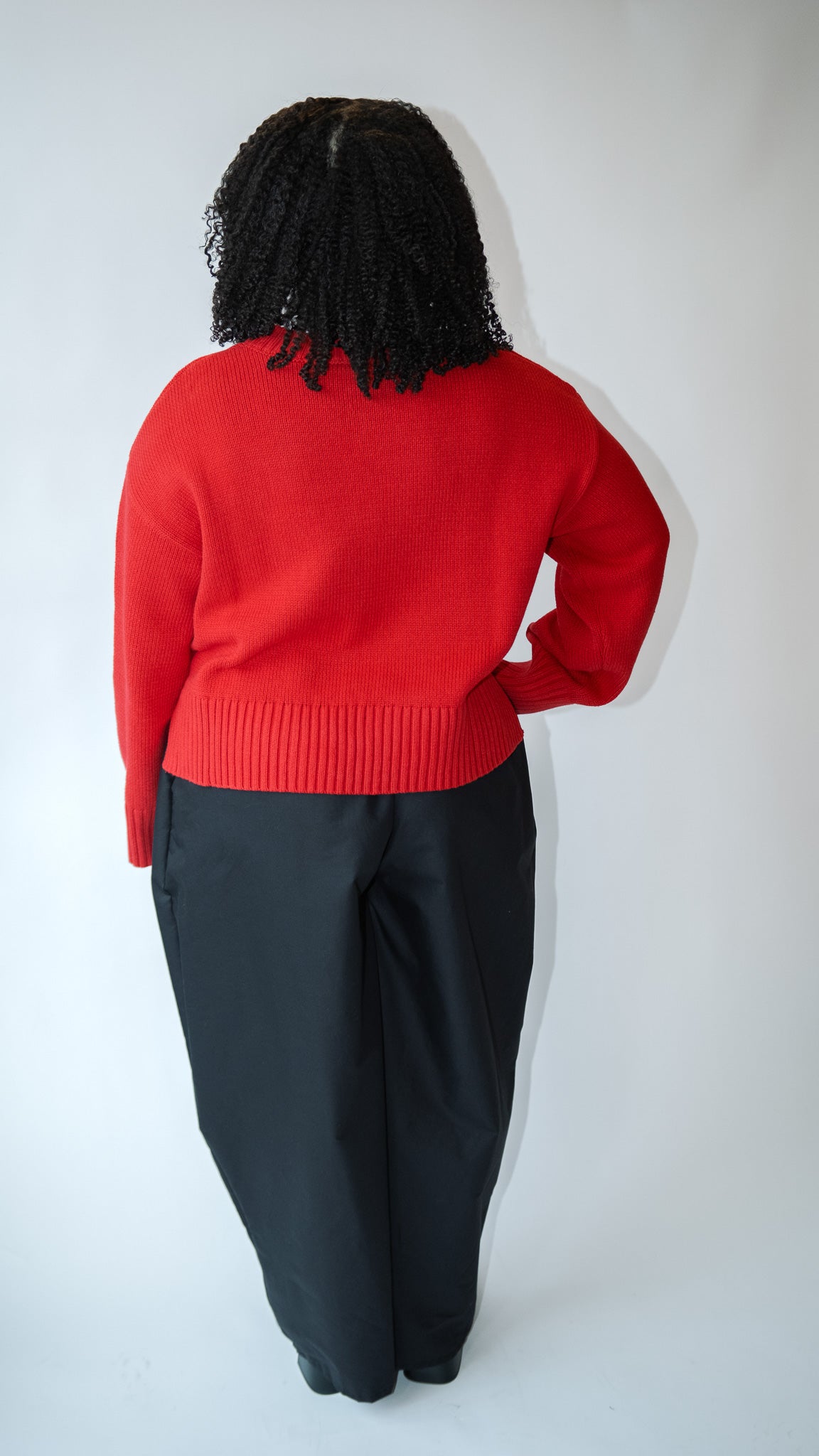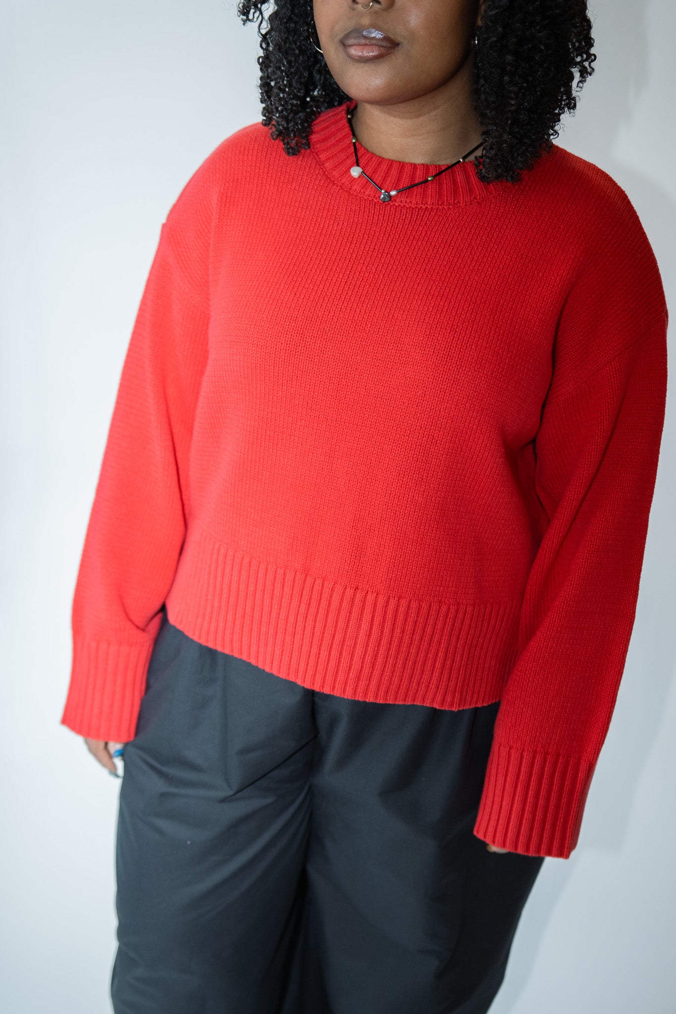 This oversized pullover sweater has a classic rib detail at the neckline and hem. The semi-cropped length ensures a proportional fit and the mid-weight fabrication makes it perfect for the colder seasons ahead.