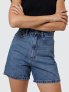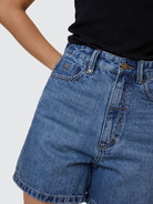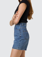 The Koko Shorts in Vintage Stone Blue are designed with a classic high-rise fit, these heavy-wearing denim shorts bring a fusion of long-lasting wearability and everyday comfort. Perfect for laid-back weekends or casual outings, it features a timeless 5-pocket design with belt loops and a sturdy button fly.