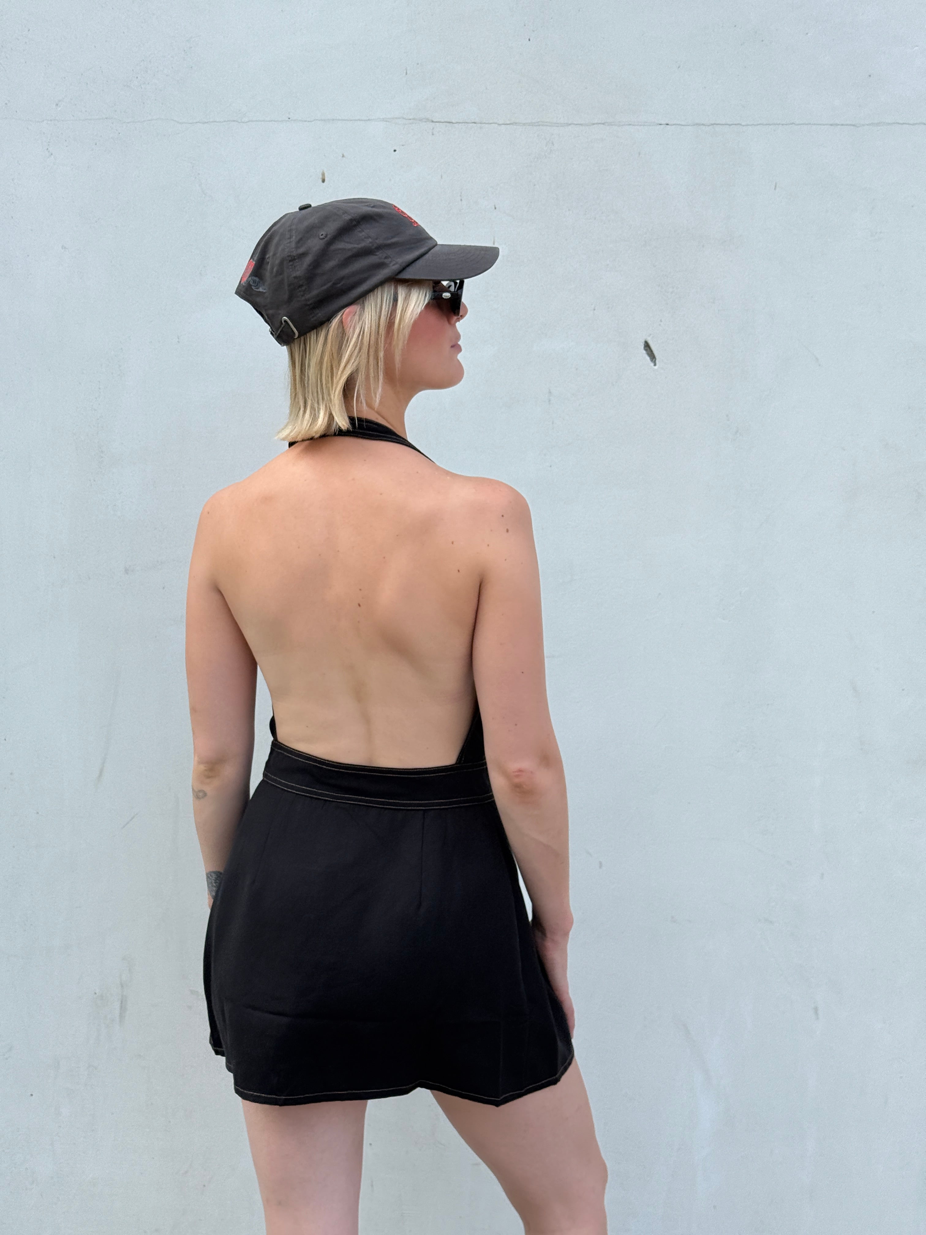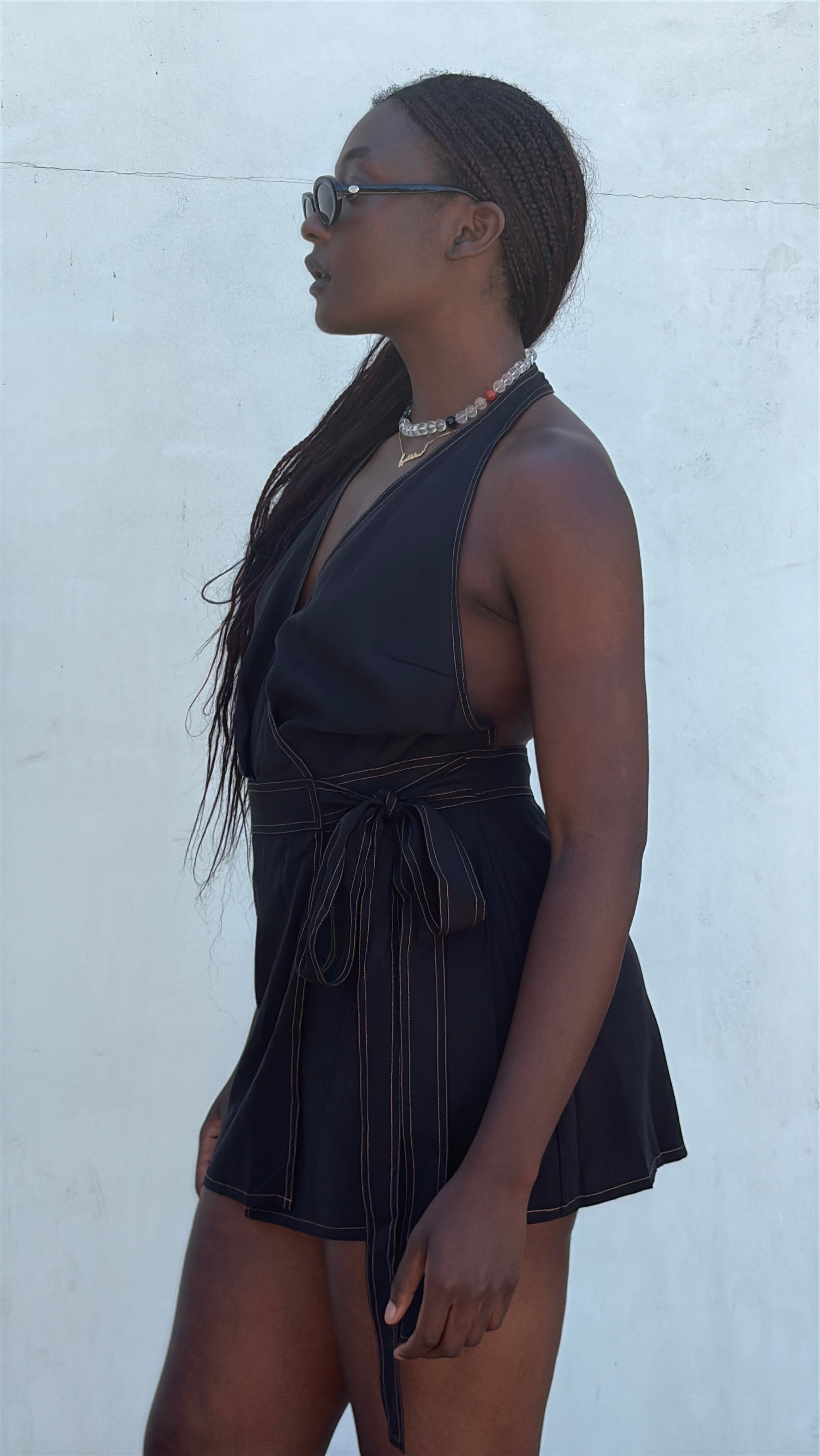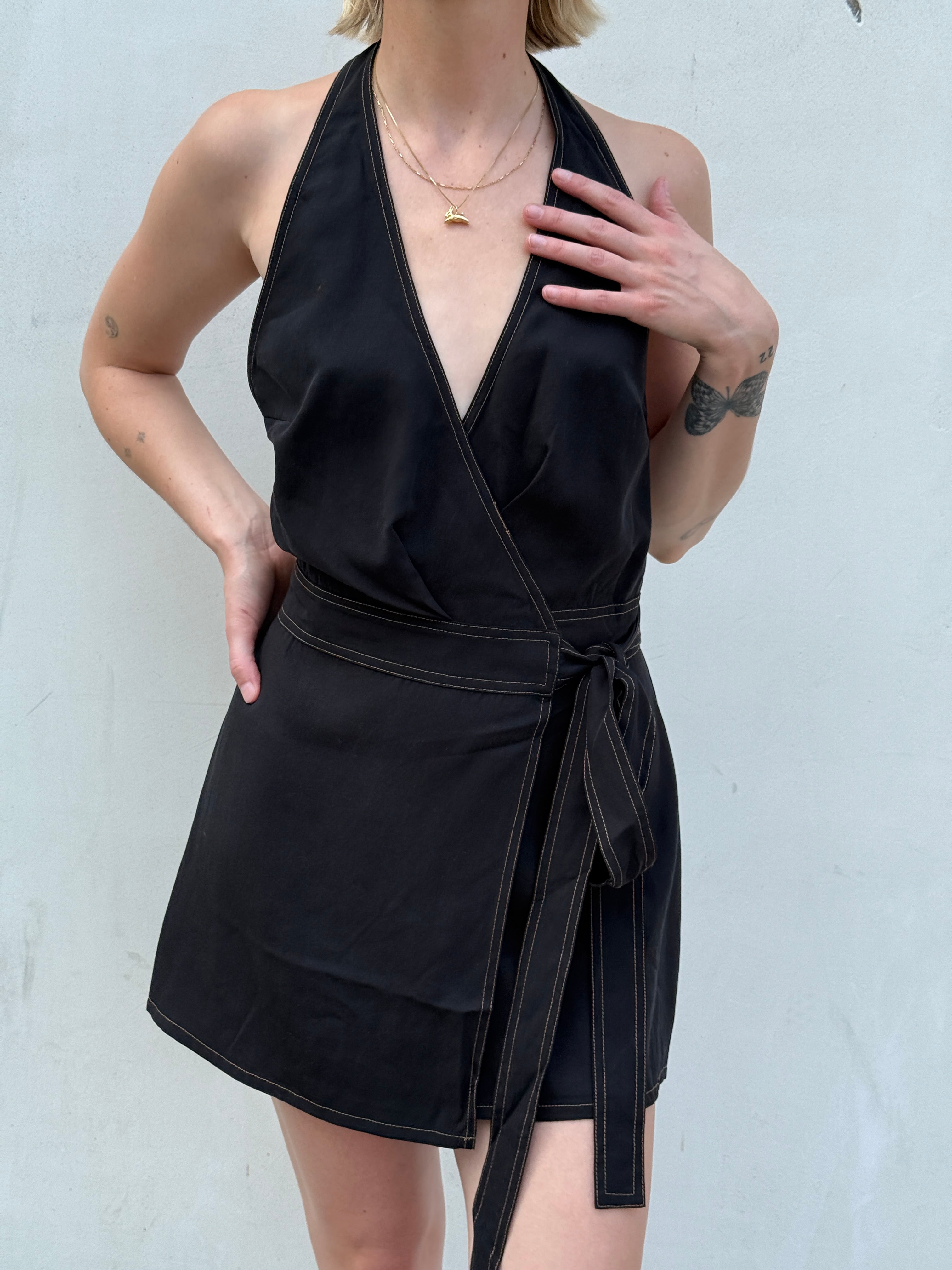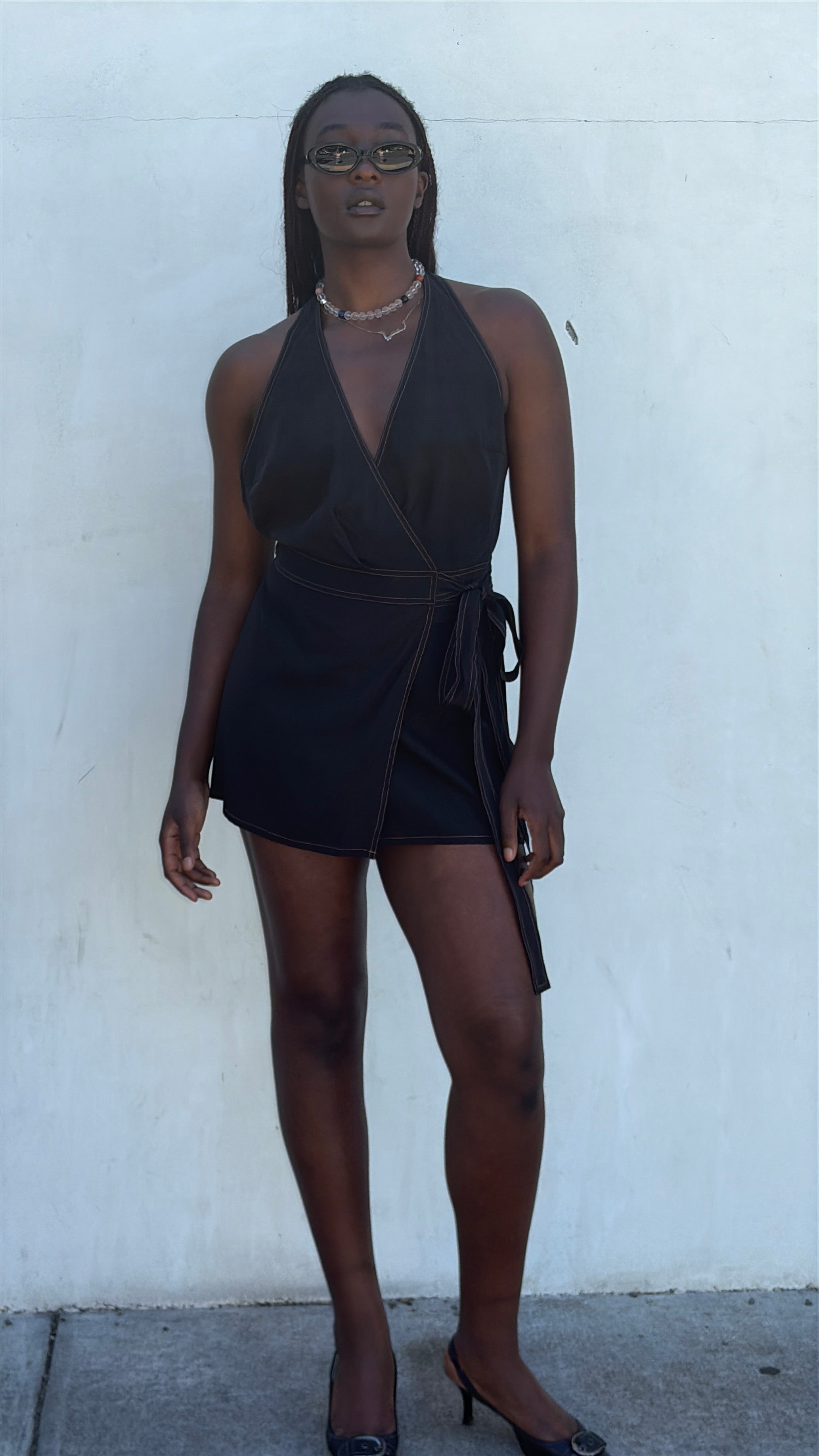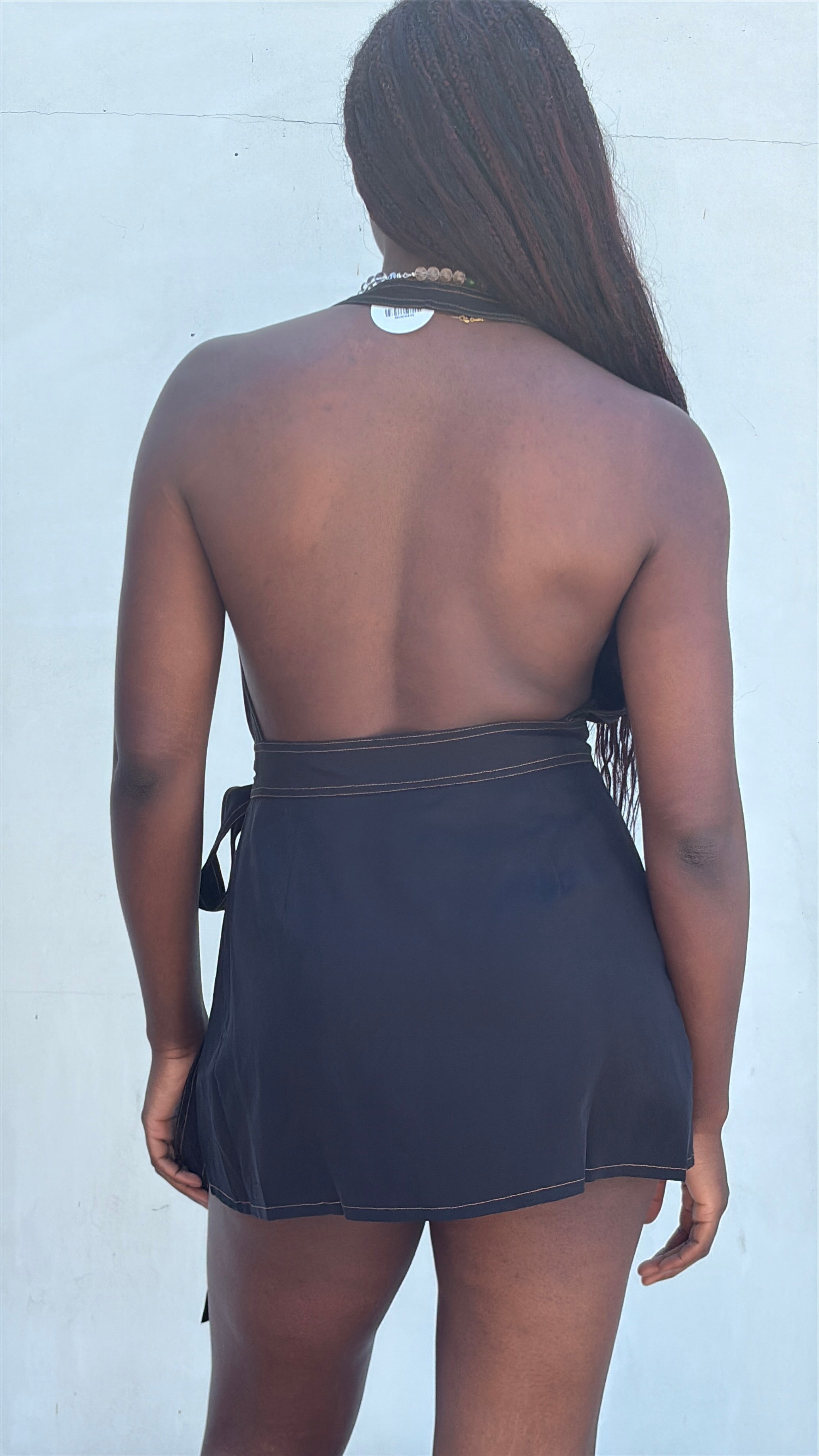 Halter mini dress, featuring a wrap style tie at the side. by Thrills.