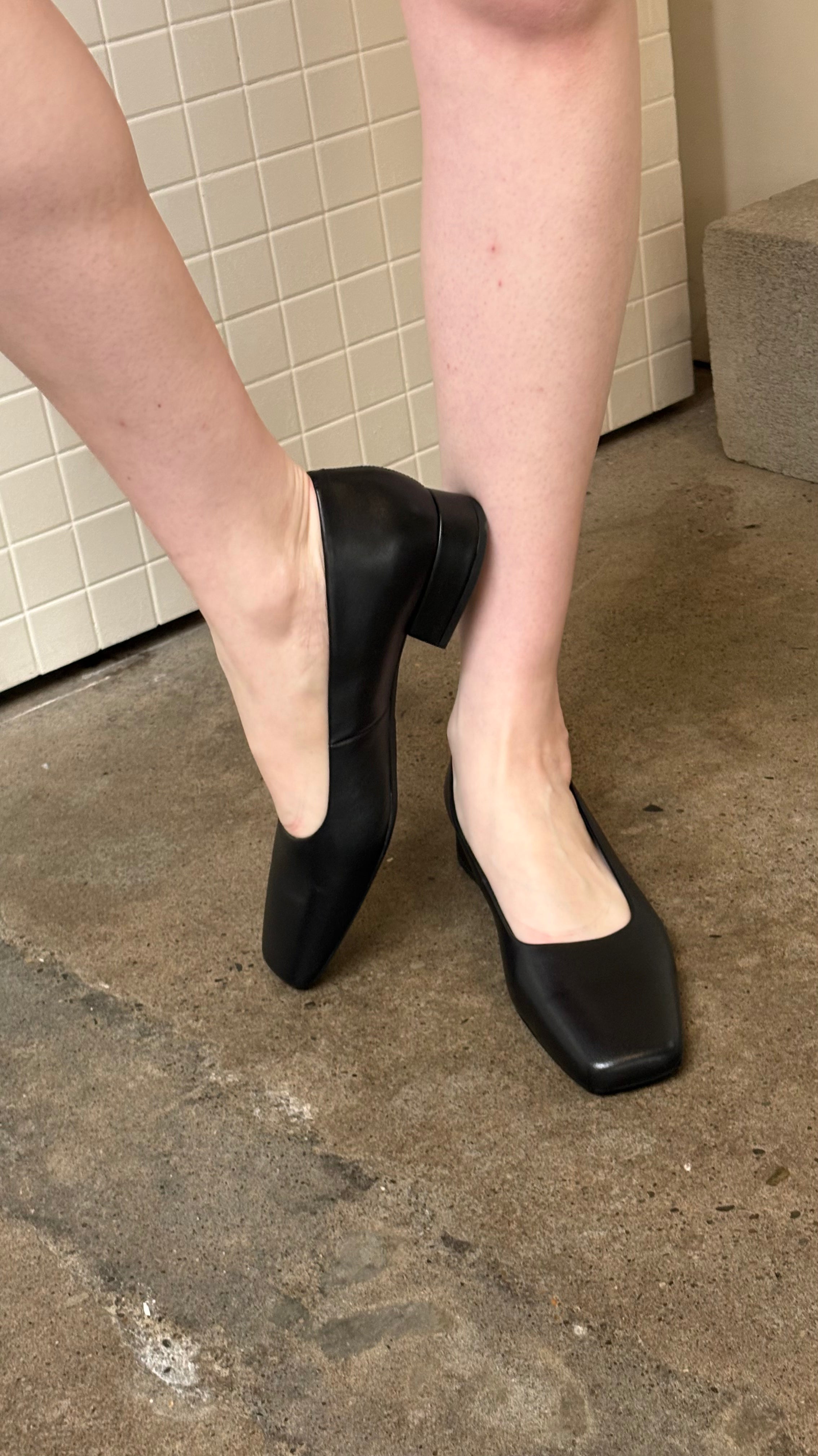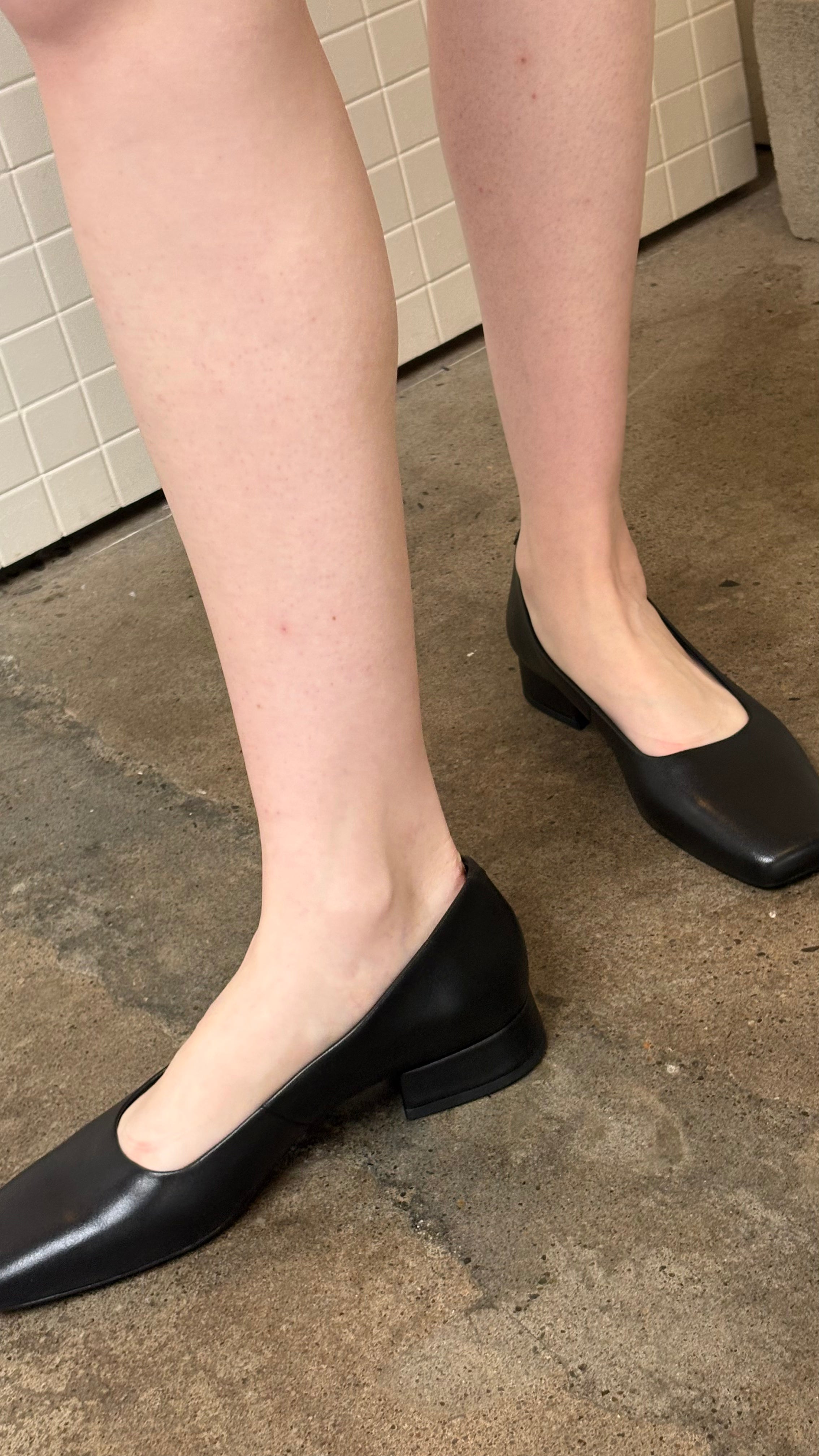 Debbi is the dressy pump with sophisticated expression. The style is crafted from black leather and features a square-toe shape and leather insoles. The low heels measure 25mm. Details include leather insoles.