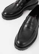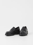 The chunky penny loafer Kenova is a Vagabond icon. Crafted from smooth black leather, the style features rounded toes, moc toe seams, and a classic penny strap across the upper. The chunky outsoles measure 40 mm.