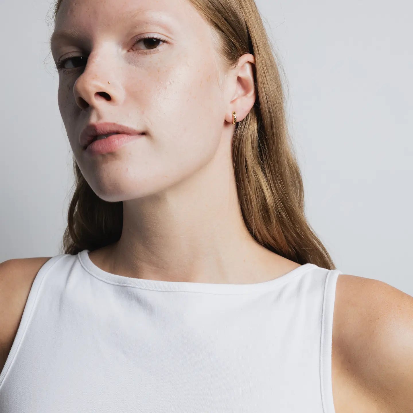 • 14k Gold plated brass organic huggie hoops with 14k gold plated hinges