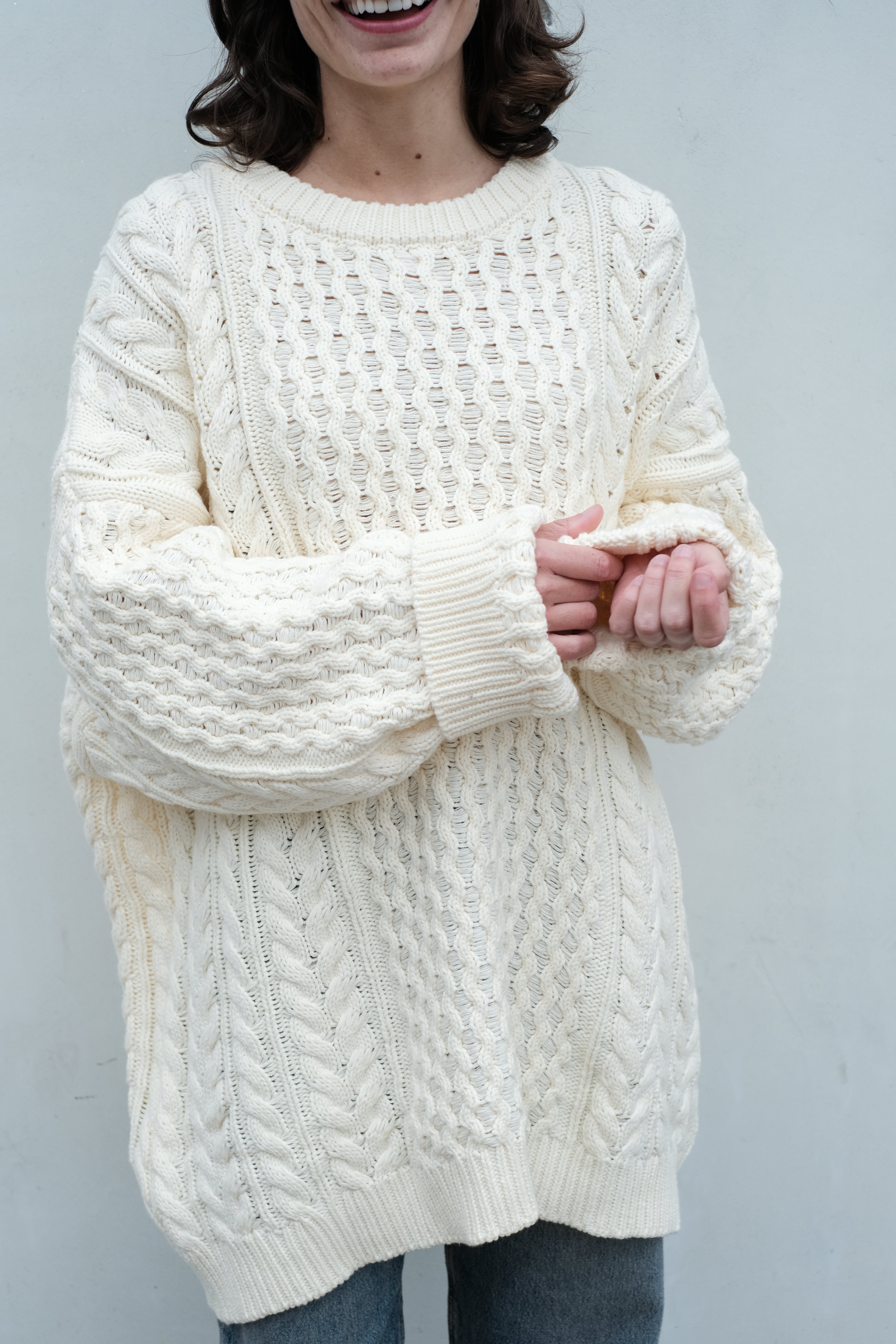 With a borrowed-from-your-dad's-closet oversized fit, the Mia Cableknit is the cozy pullover you'll be snuggling up to all winter.