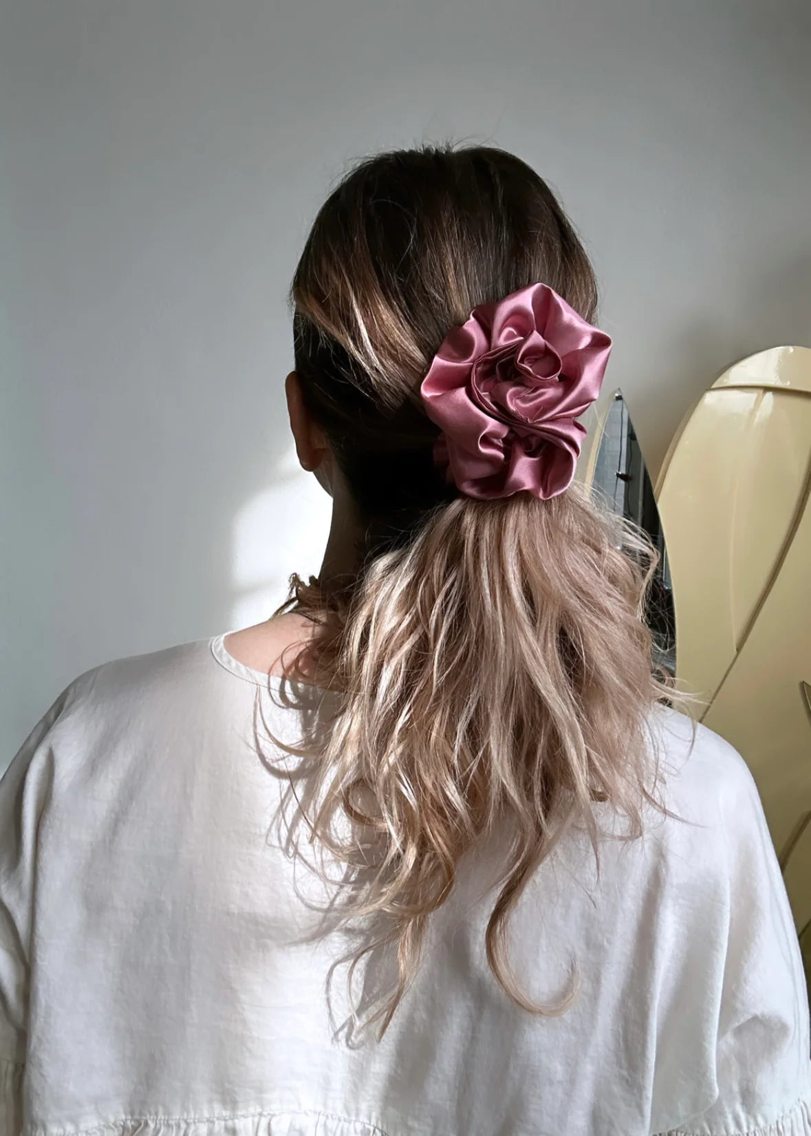 Satin Rosette scrunchie, wear on your wrist as a corsage or in your hair for the perfect floral styling note!