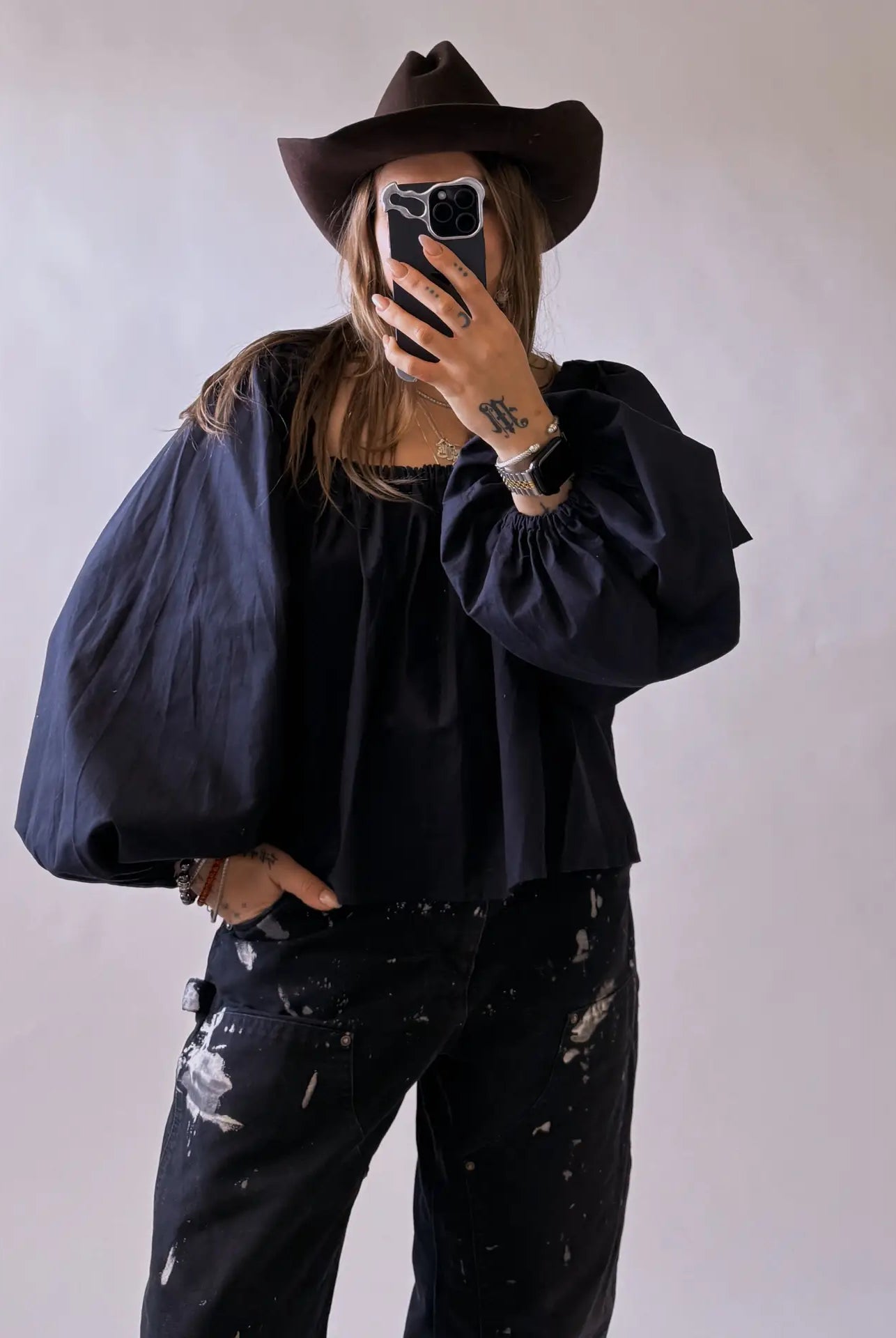 Black Long Puff Sleeve Shirt